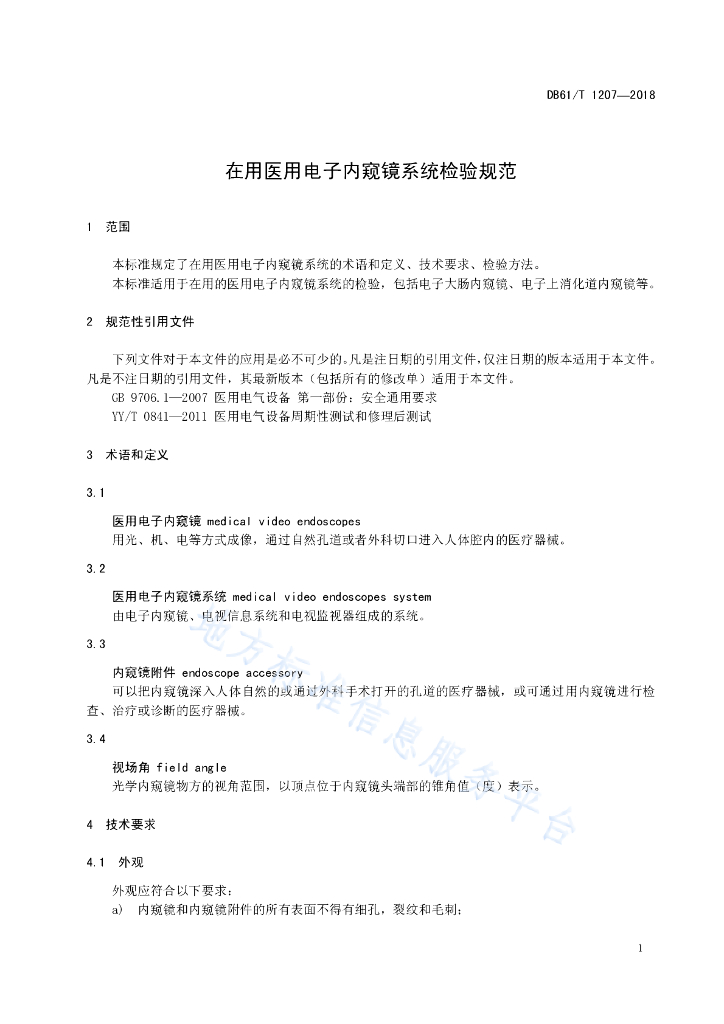 DB61/T 1207-2018 在用医用电子内窥镜系统检验规范