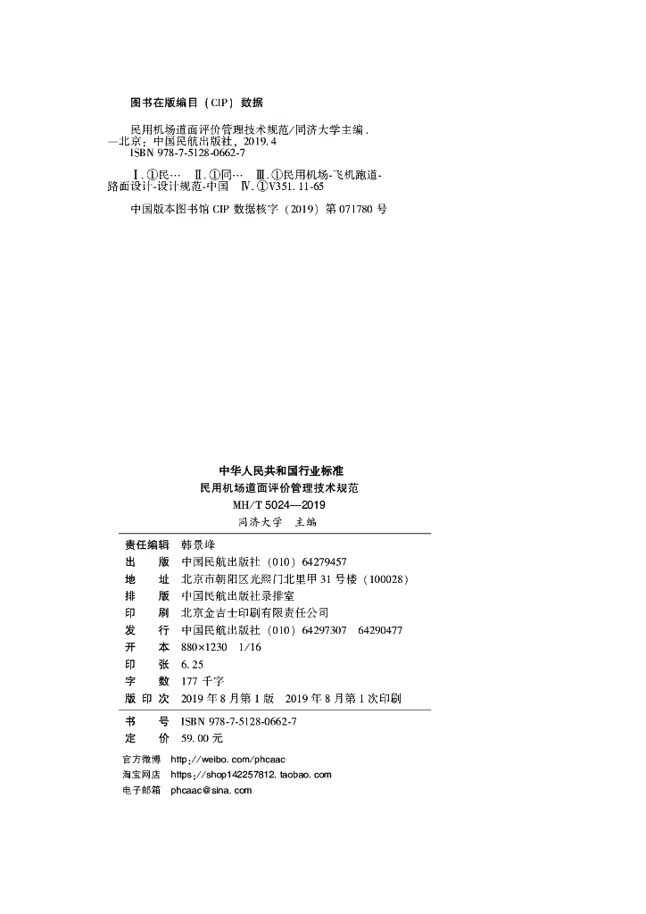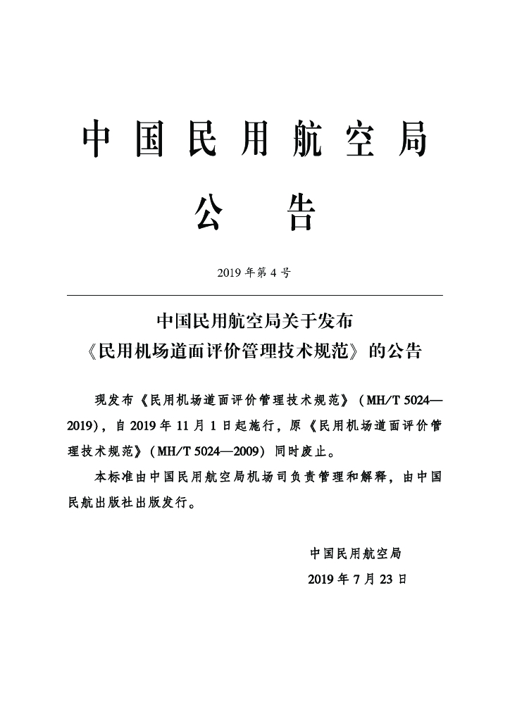 MH/T 5024-2019 民用机场道面评价管理技术规范