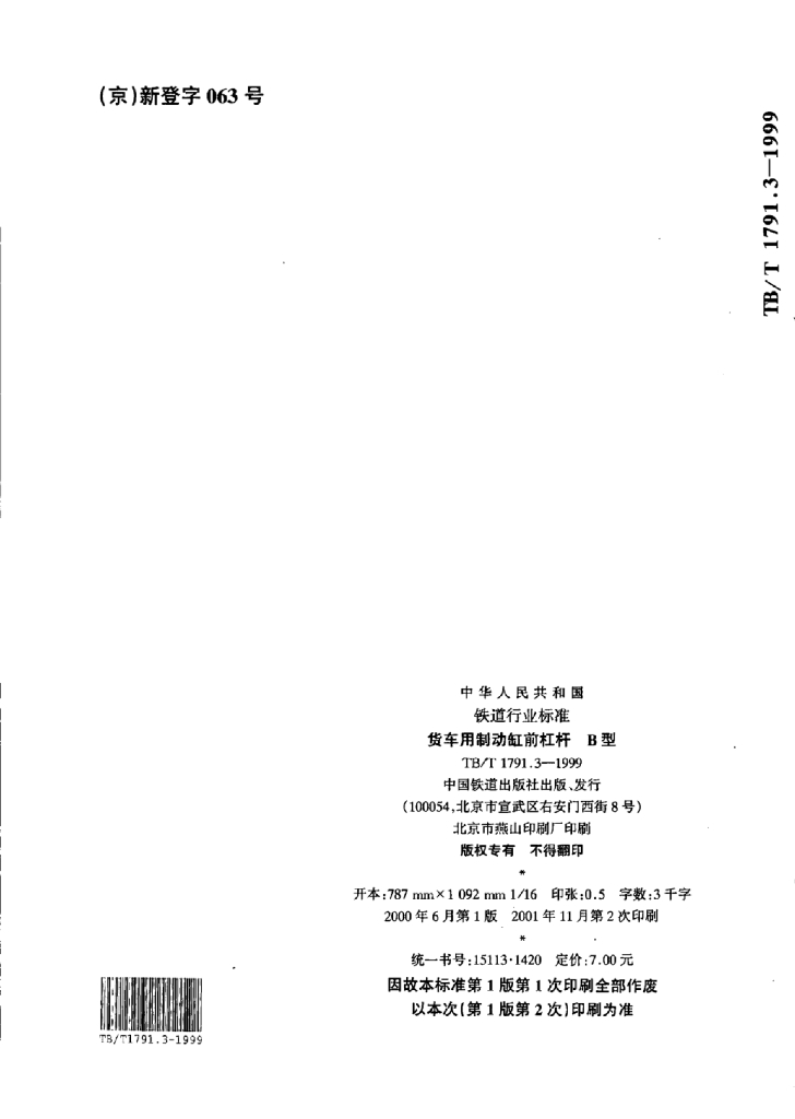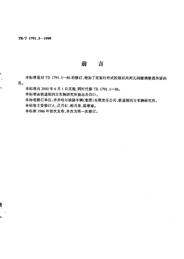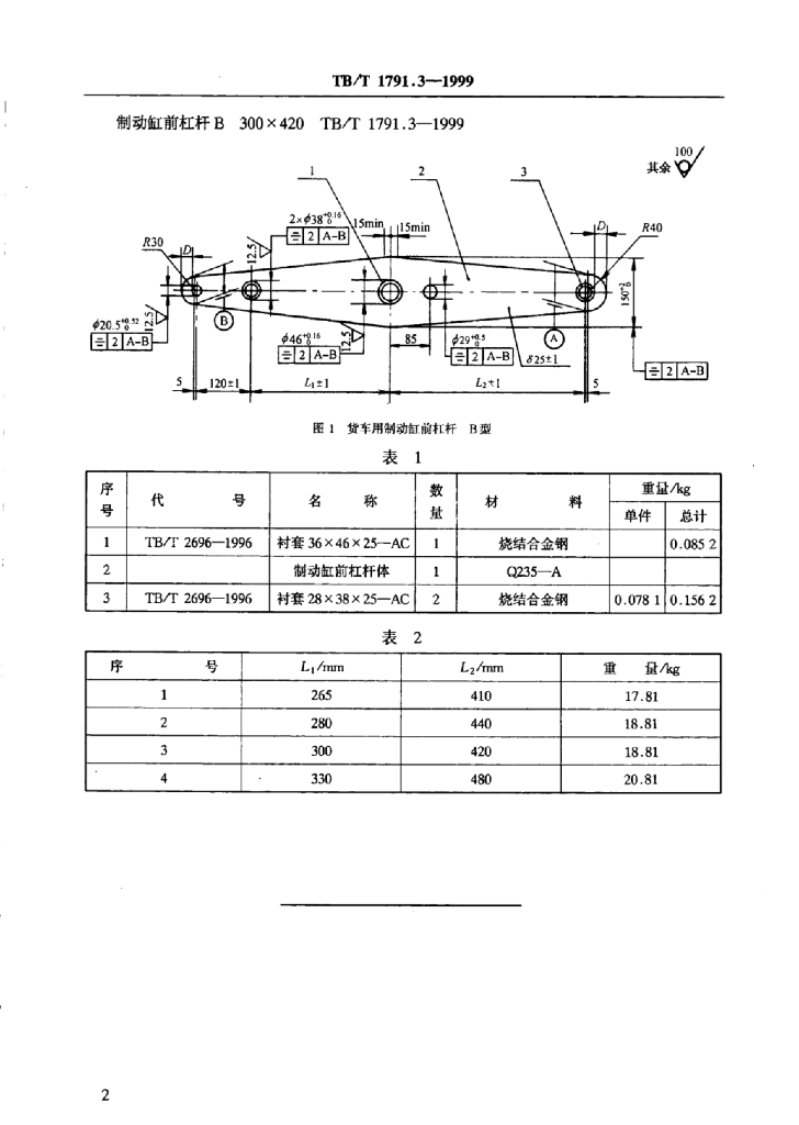 TB/T 1791.3-1999 货车用制动缸前杠杆B型