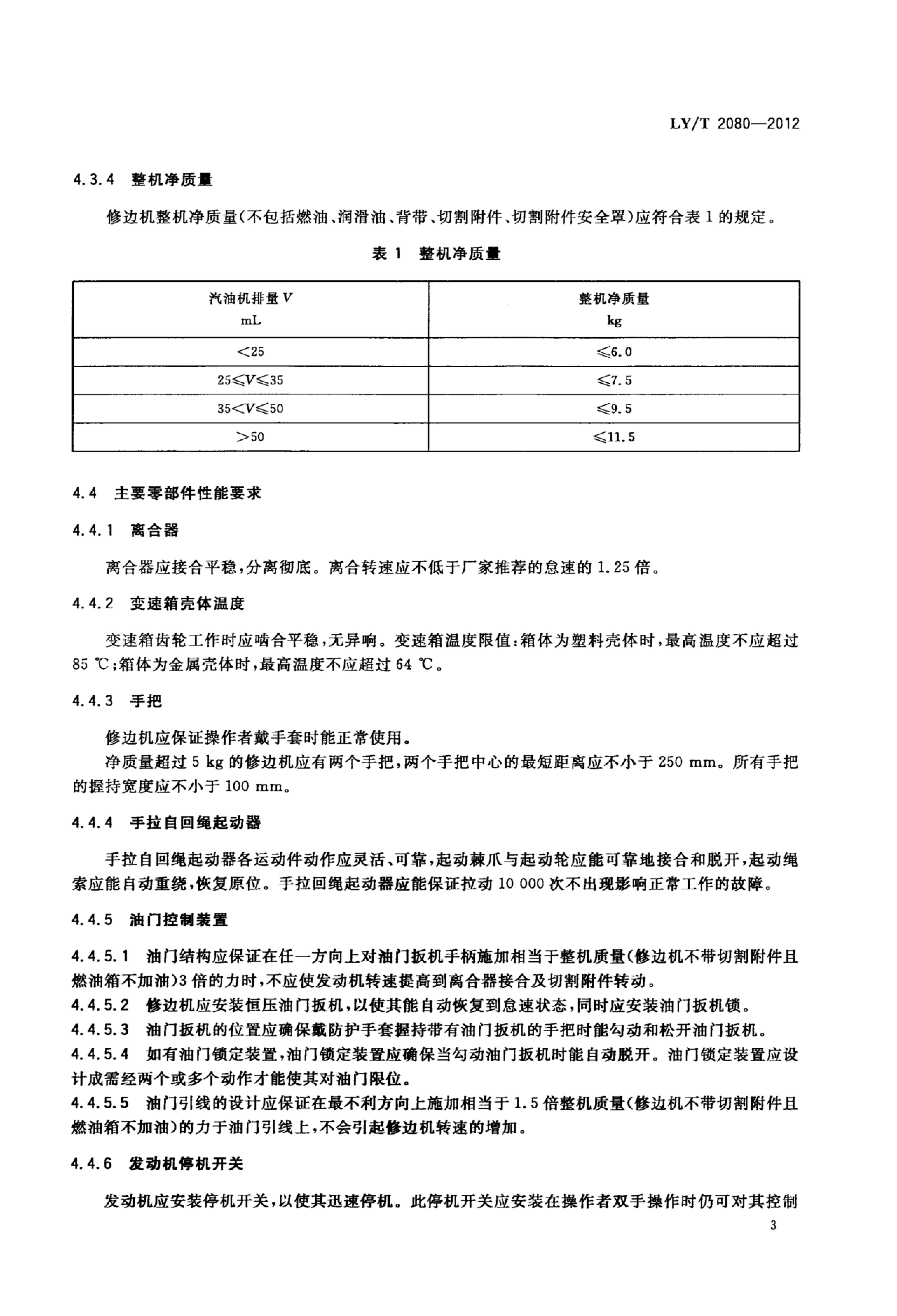 LY/T 2080-2012 园林机械 以汽油机为动力的手持式草坪修边机