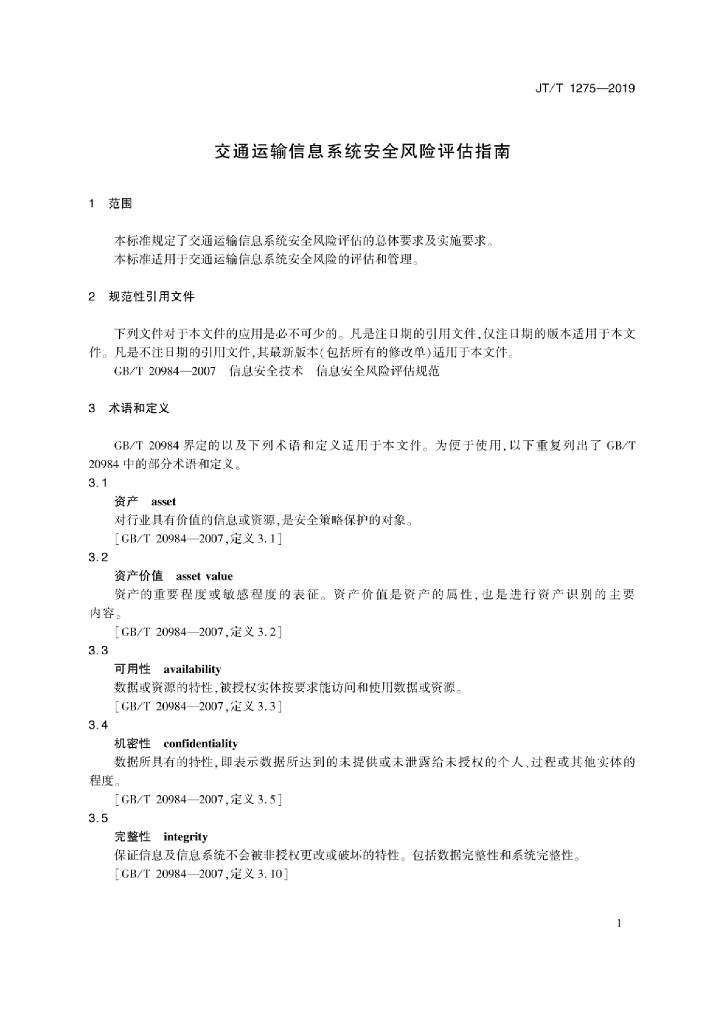JT/T 1275-2019 交通运输信息系统安全风险评估指南