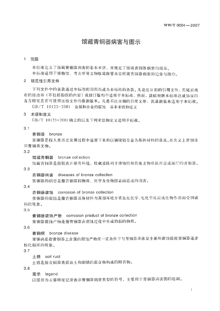 WW/T 0004-2007 馆藏青铜器病害与图示
