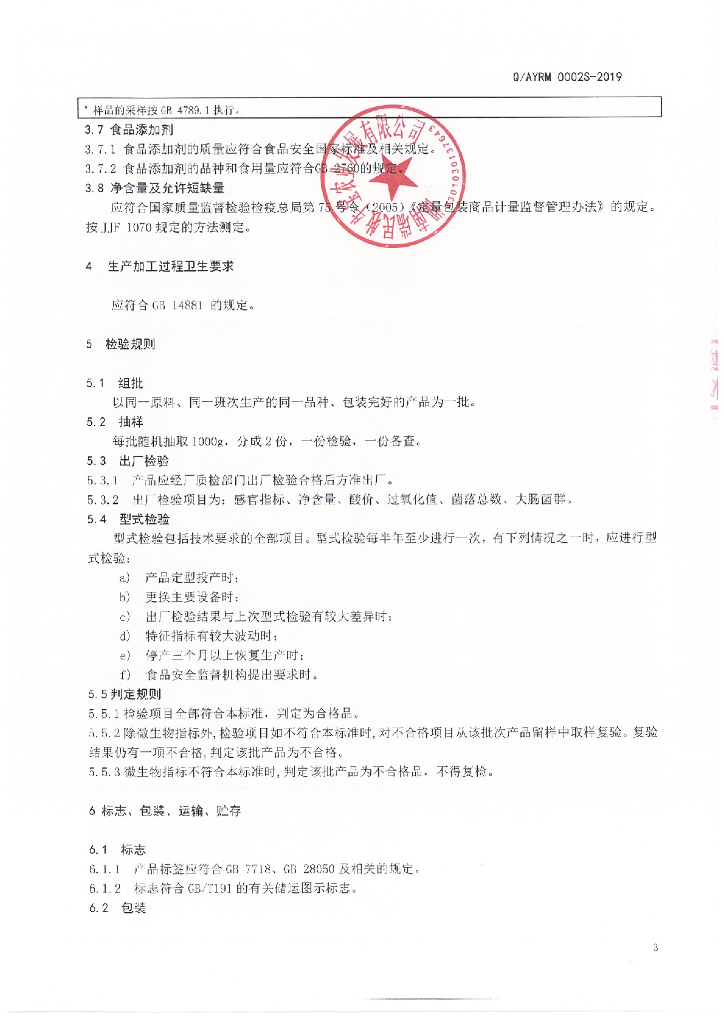 Q/AYRM 0002S-2019 半固态复合调味料