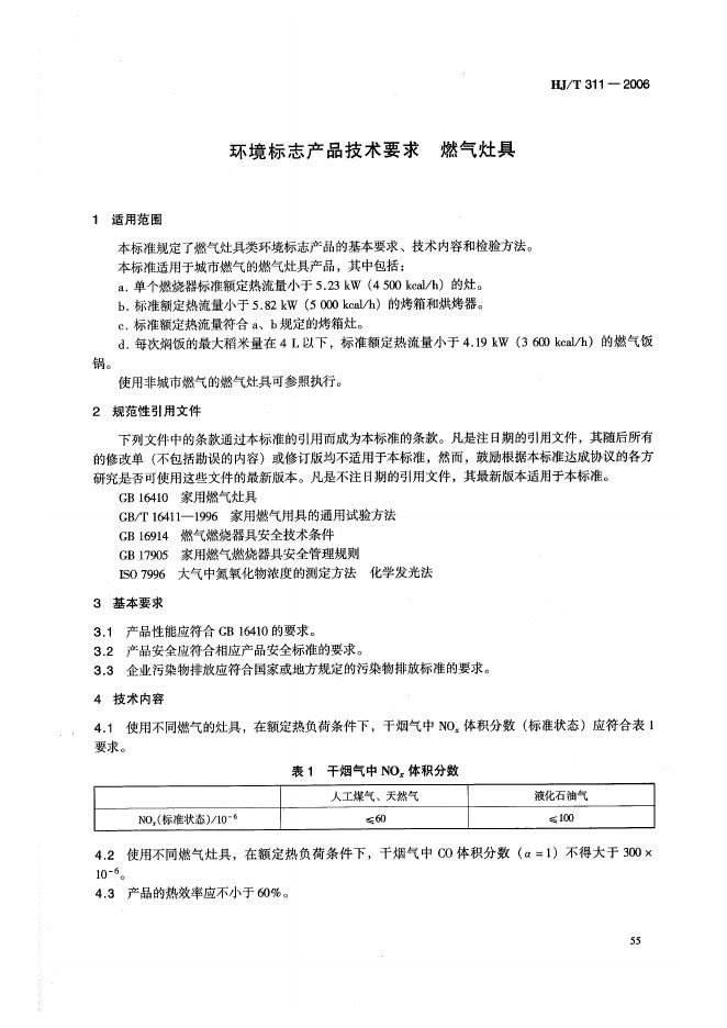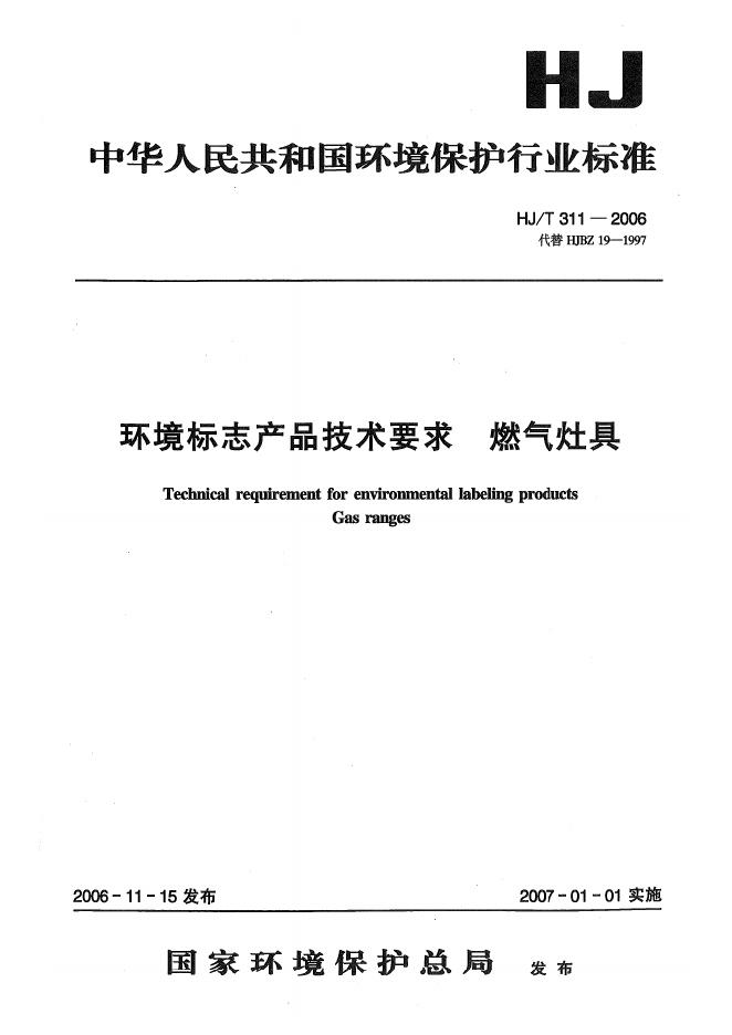 HJ/T 311-2006 环境标志产品技术要求 燃气灶具