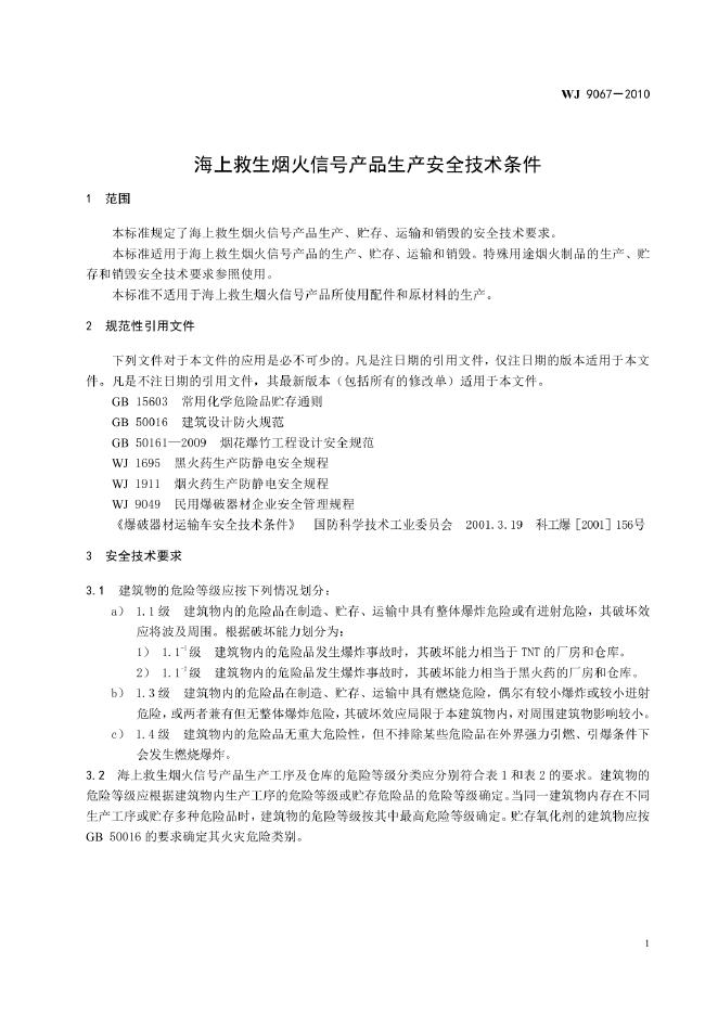 WJ 9067-2010 海上救生烟火信号产品生产安全技术条件