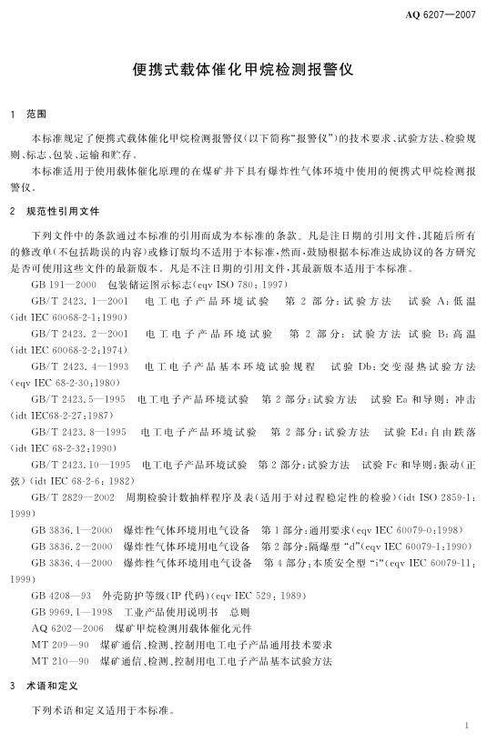 AQ 6207-2007 便携式载体催化甲烷检测报警仪
