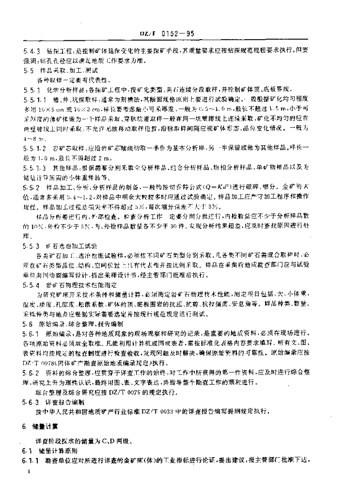 DZ/T 0152-1995 岩金矿地质详查规范