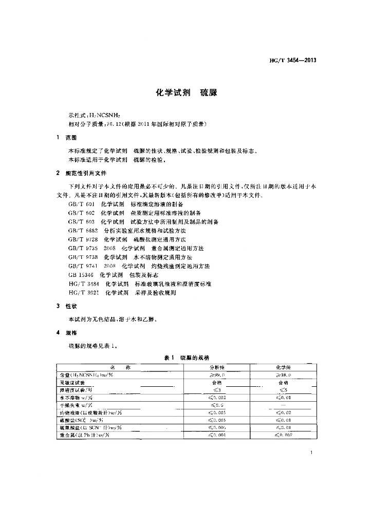 HG/T 3454-2013 代替 HG/T 3454-1999 化学试剂 硫脲