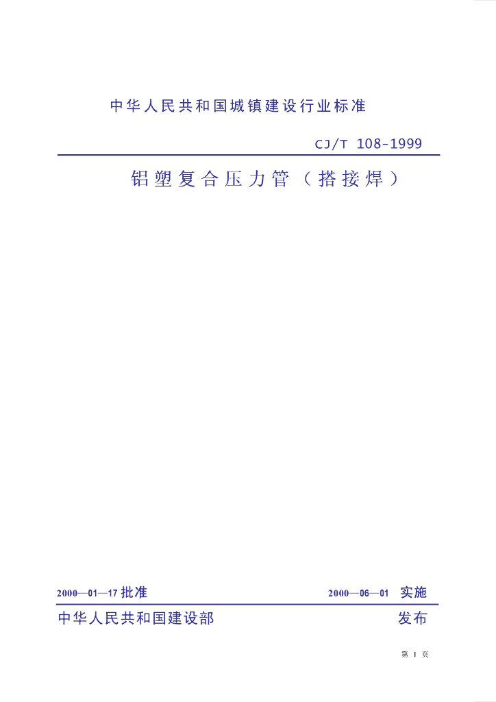 CJ/T 108-1999 铝塑复合压力管(搭接焊)