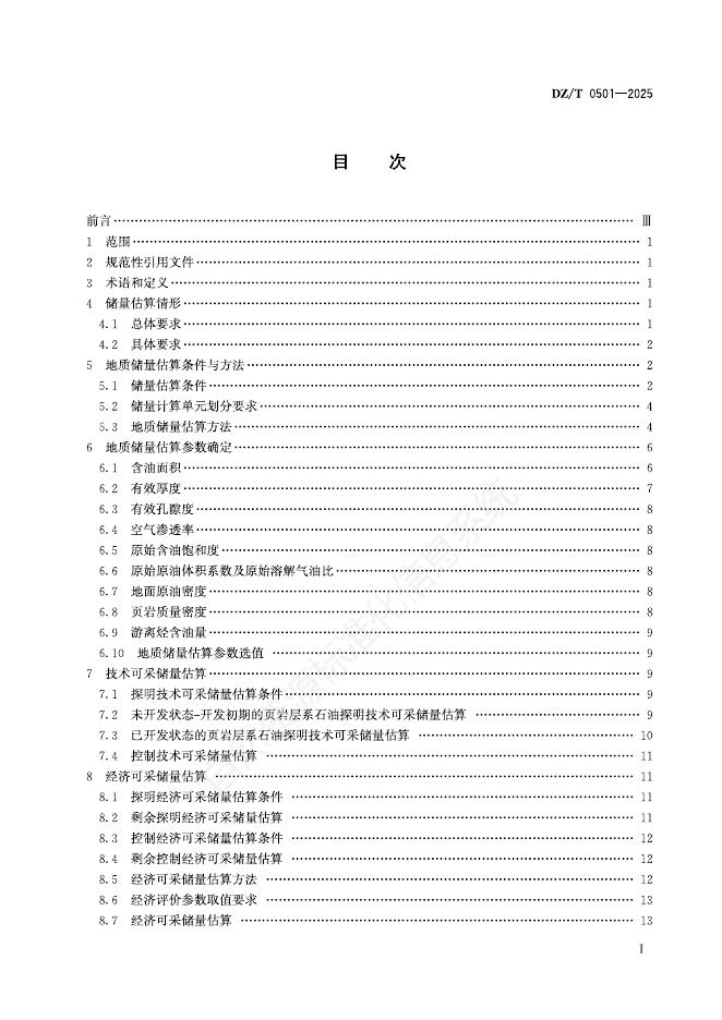 DZ/T 0501-2025 页岩层系石油储量估算规范