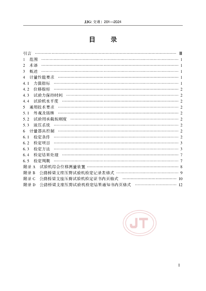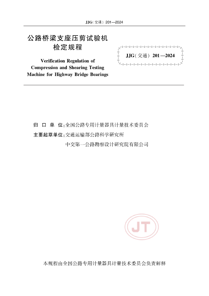 JJG(交通)201-2024 公路桥梁支座压剪试验机