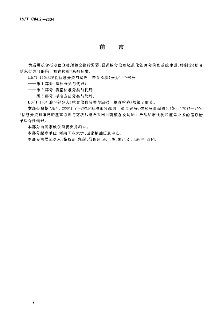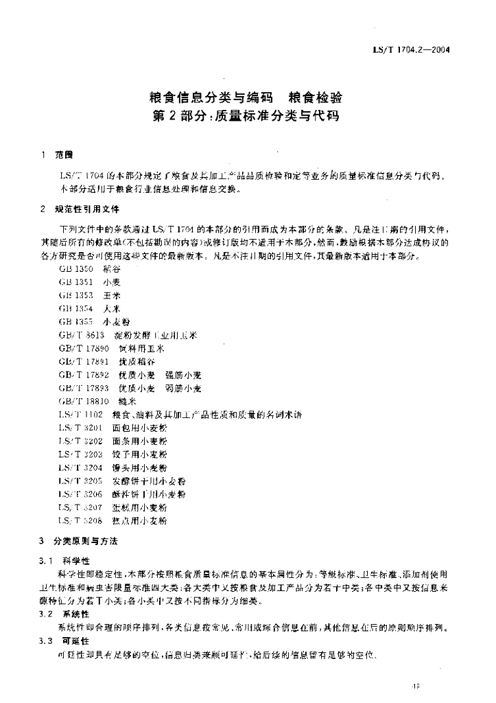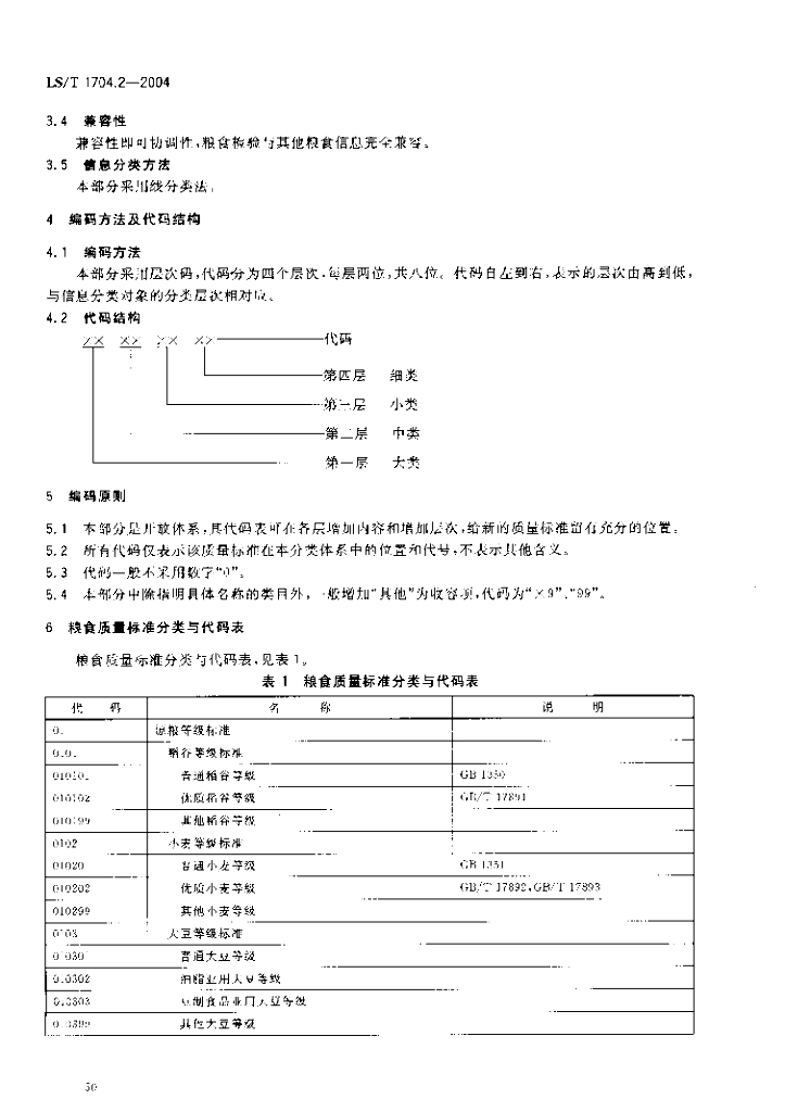 LS/T 1704.2-2004 粮食信息分类与编码 粮食检验 第2部分:质量标准分类与代码
