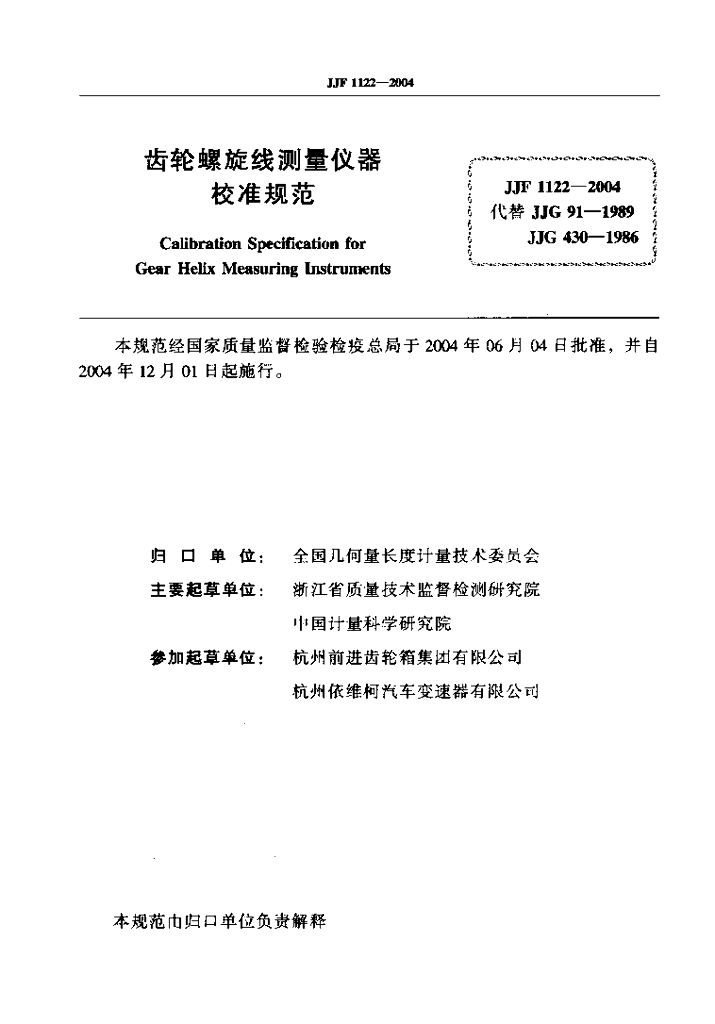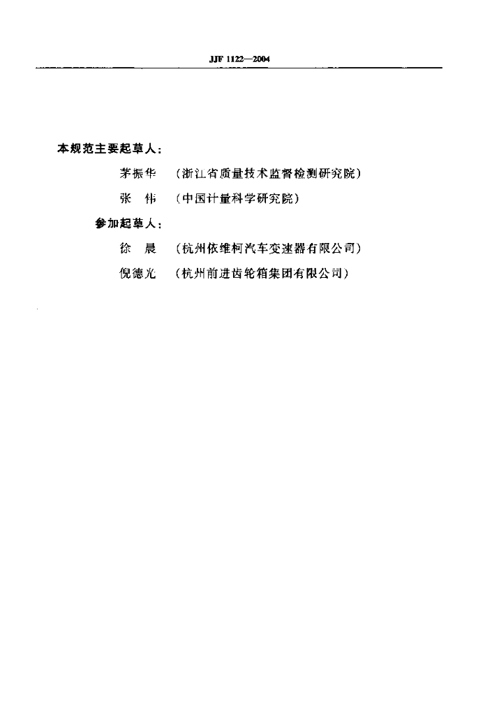 茅振华(浙江省质量技术监督检测研究院)、张伟(中国计量科学研究院)、徐晨(杭州依维柯汽车变速器有限公司)、倪德光(杭州前进齿轮箱集团有限公司)