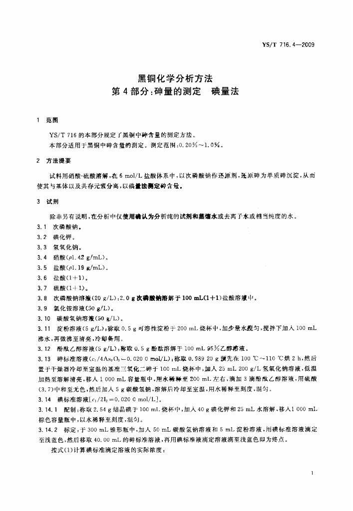 YS/T 716.4-2009 黑铜化学分析方法 第4部分:砷量的测定 碘量法