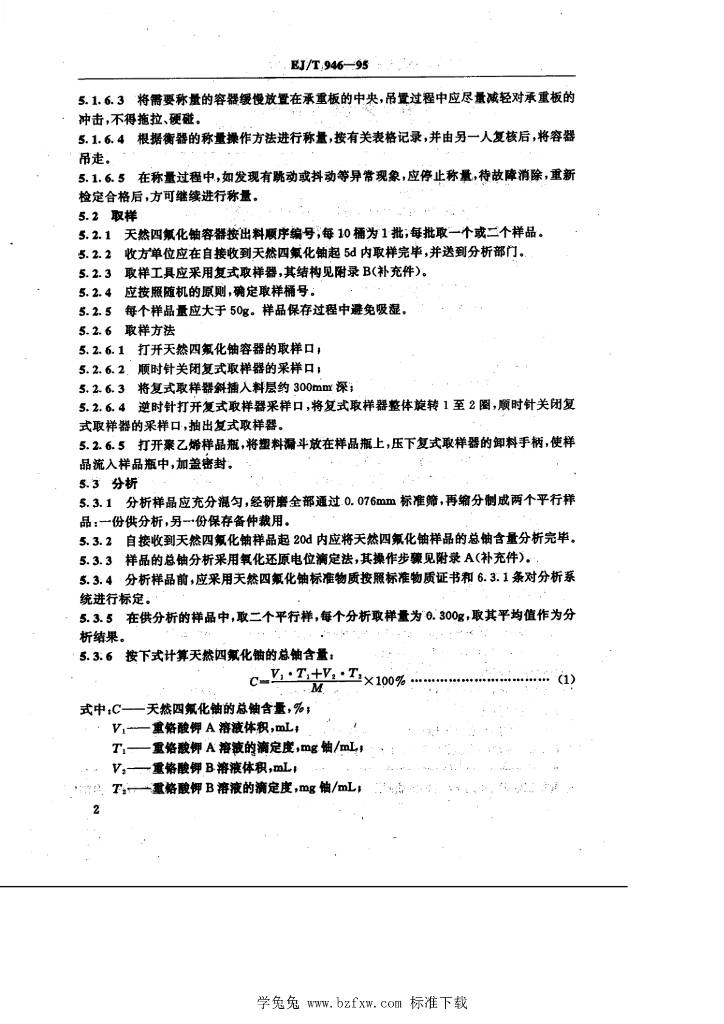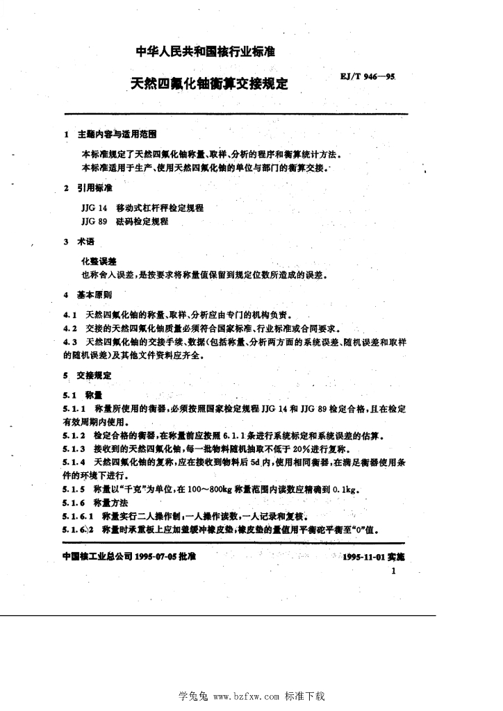EJ/T 946-1995 天然四氟化铀衡算交接规定