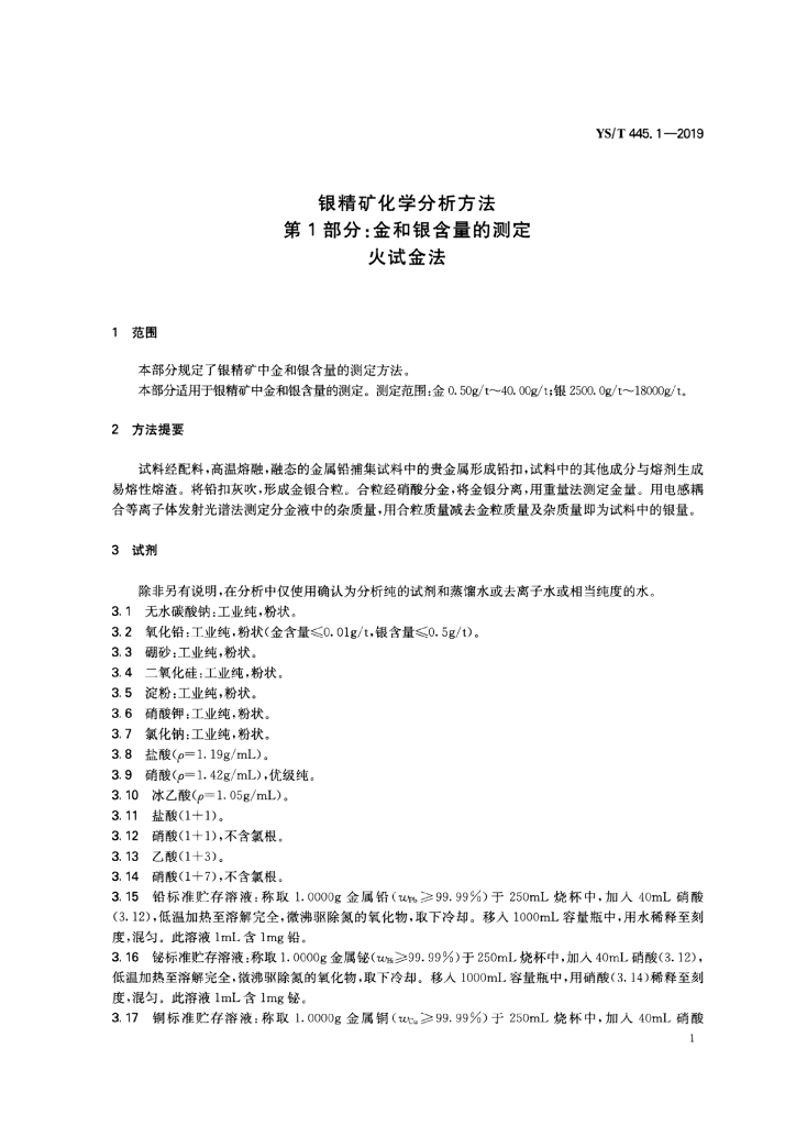 YS/T 445.1-2019 银精矿化学分析方法 第1部分:金和银含量的测定 火试金法