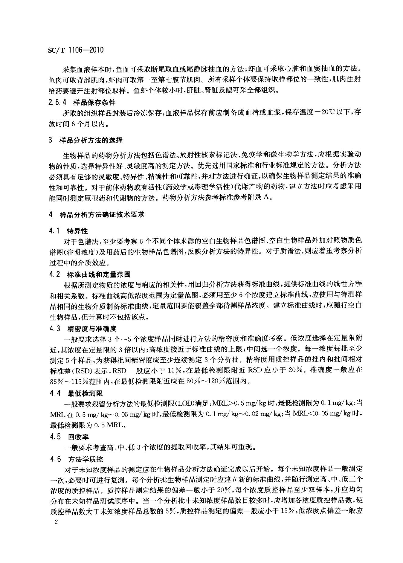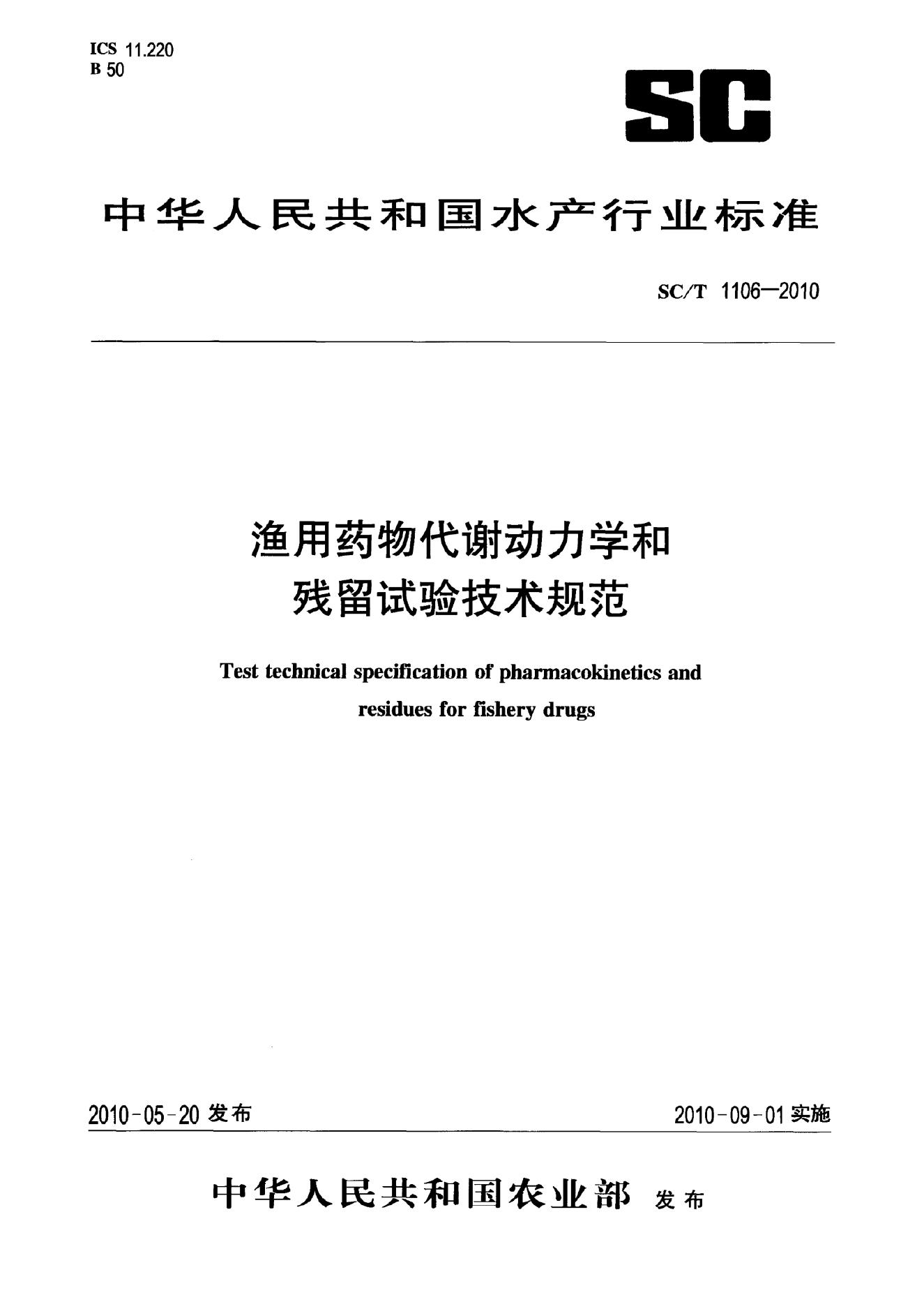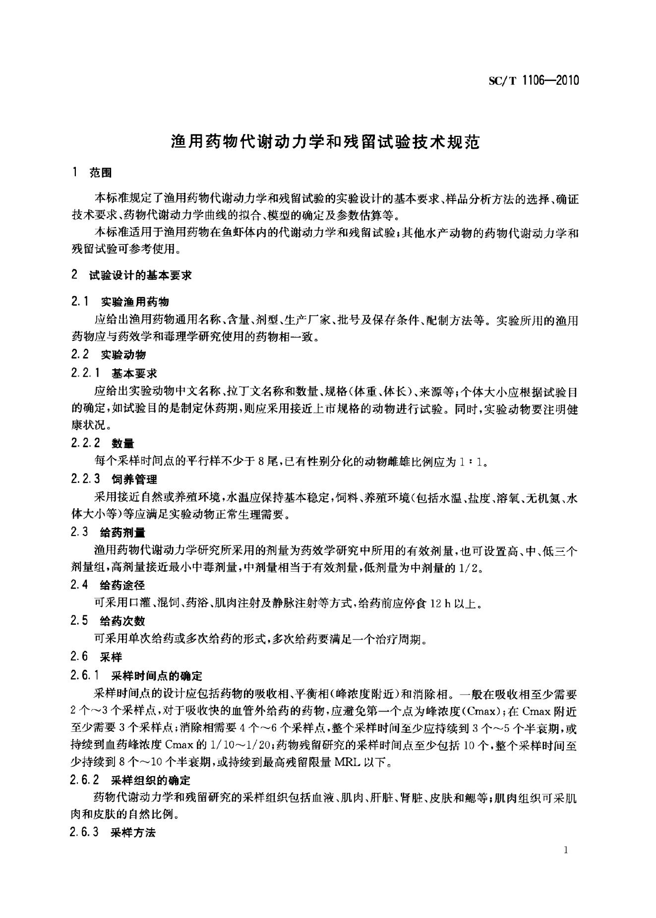 SC/T 1106-2010 渔用药物代谢动力学和残留试验技术规范