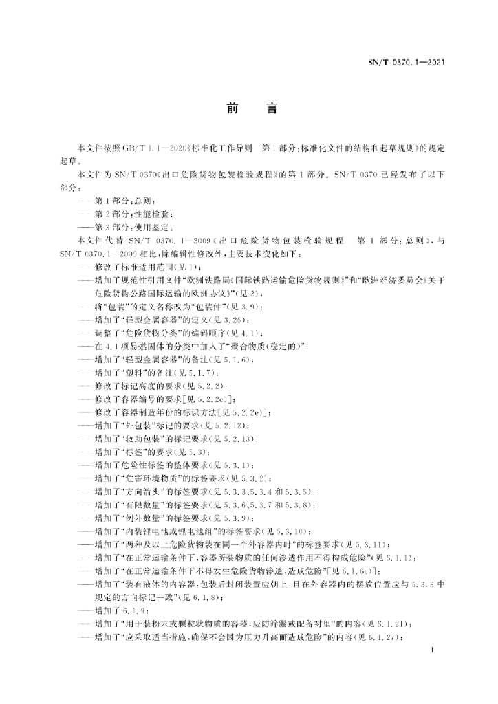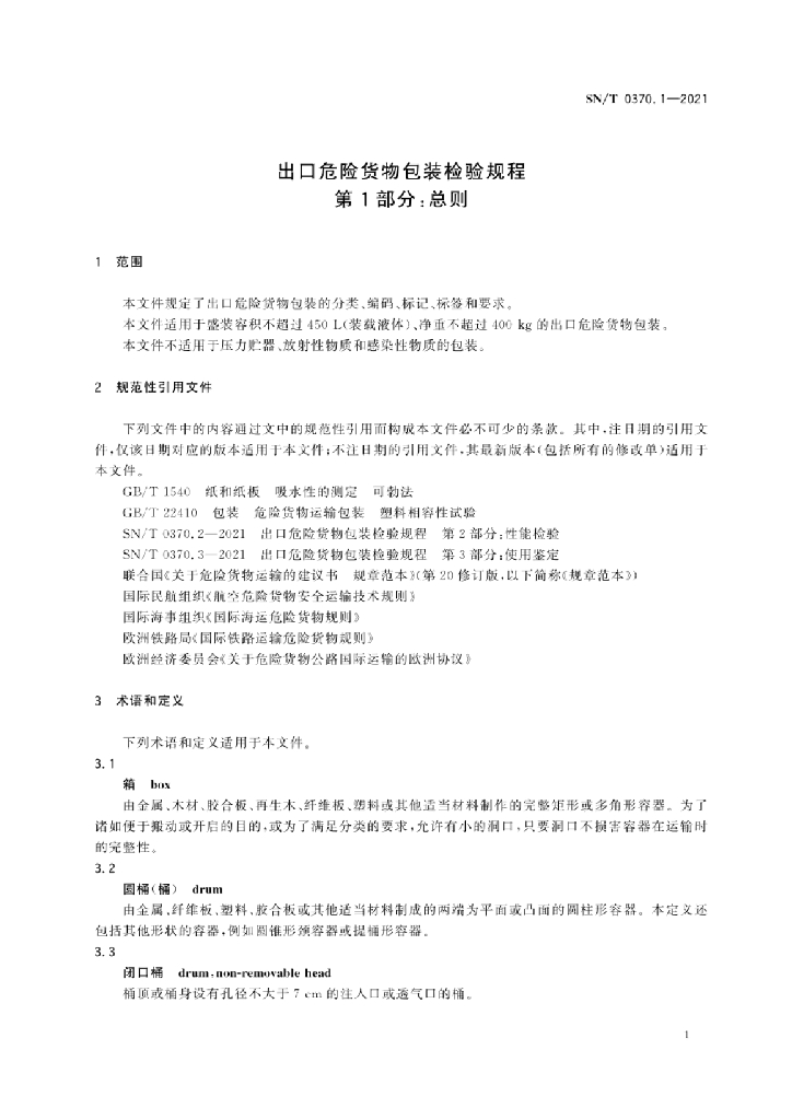 SN/T 0370.1-2021 出口危险货物包装检验规程 第1部分:总则
