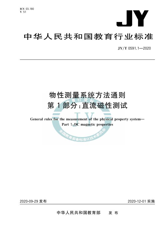 JY/T 0591.1-2020 物性测量系统方法通则 第1部分:直流磁性测试