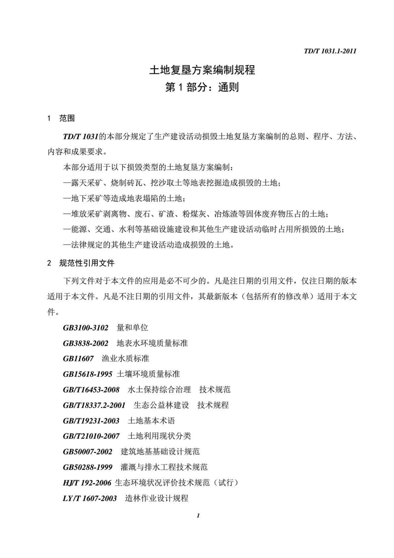 TD/T 1031.1-2011 土地复垦方案编制规程 第1部分:通则