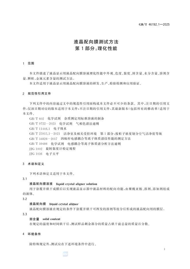 GB/T 46192.1-2025 液晶配向膜测试方法 第1部分:理化性能