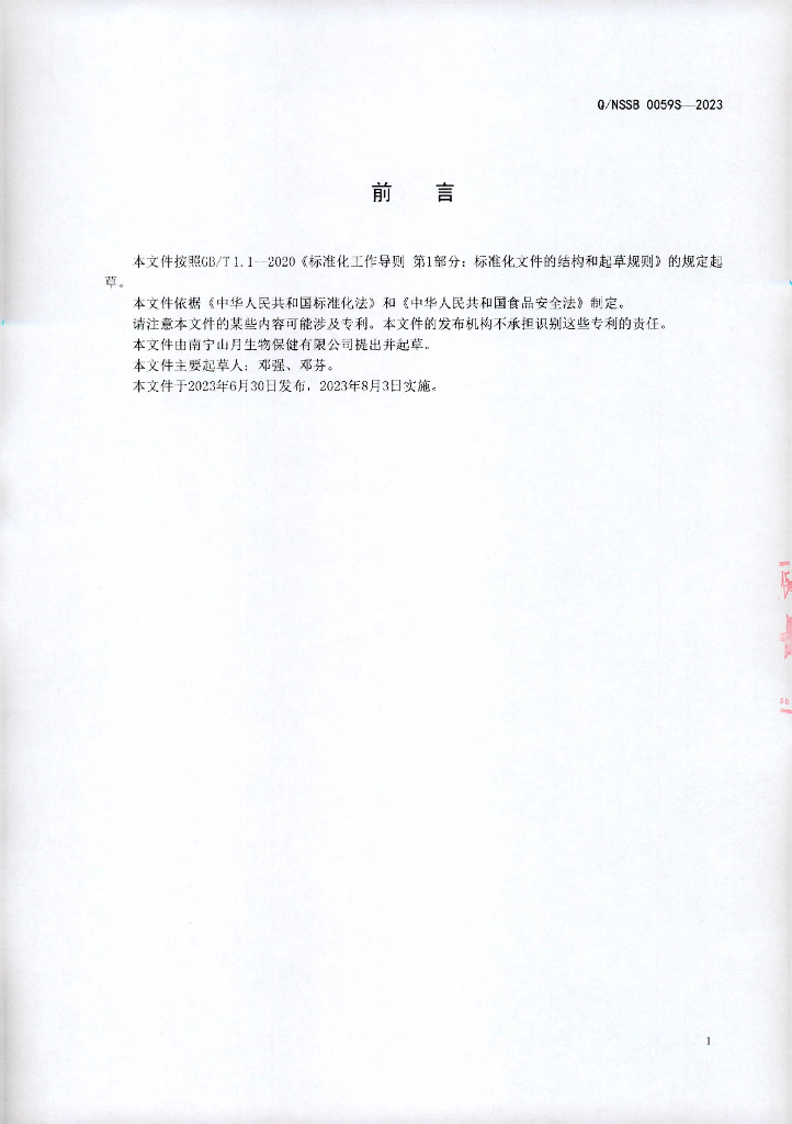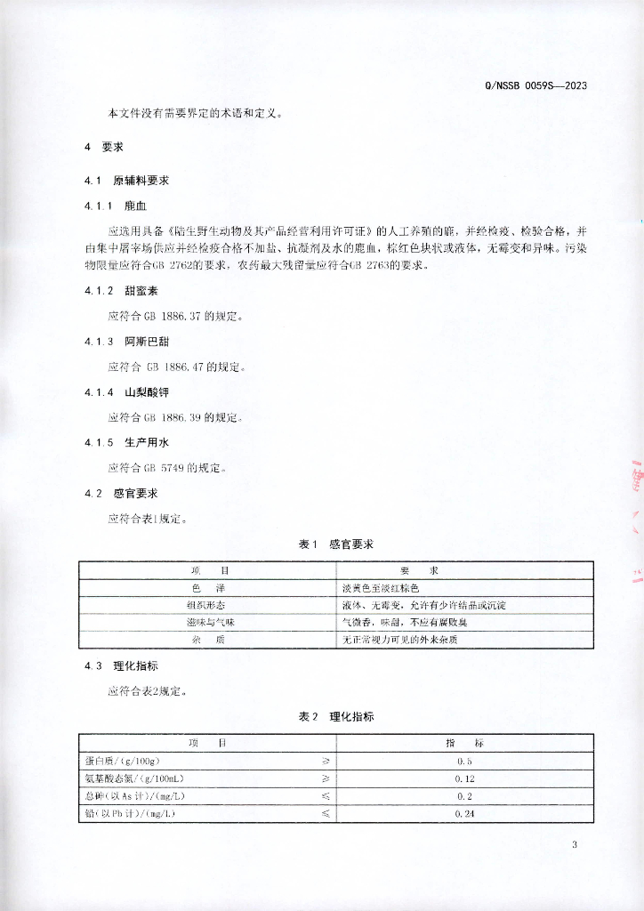 Q/NSSB 0059S-2023 鹿血蛋白饮液