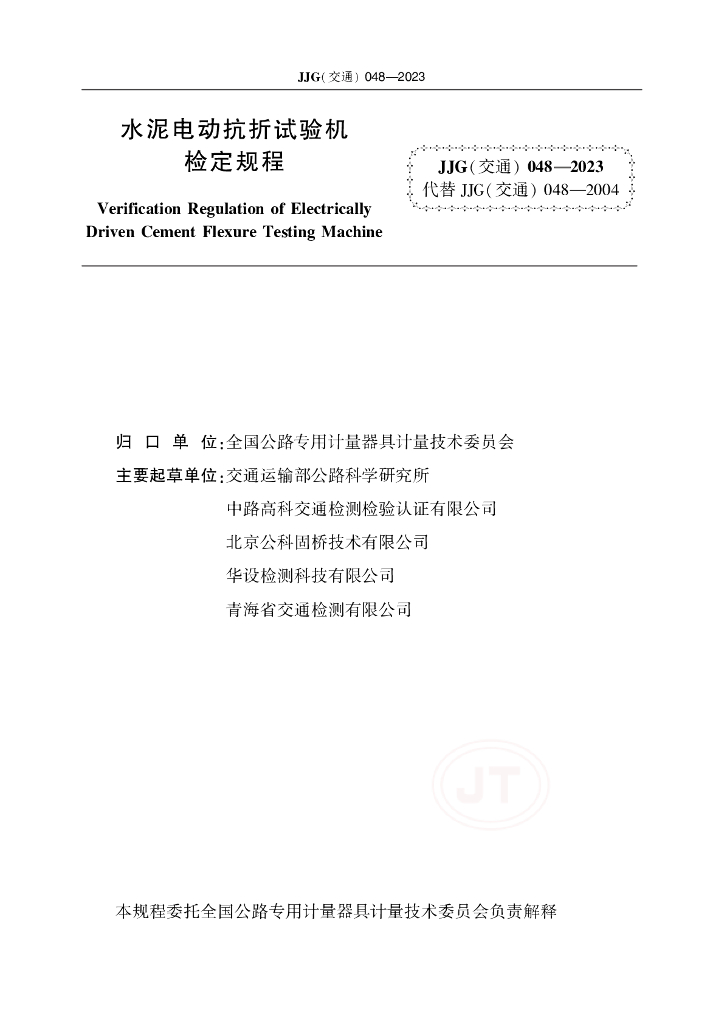 JJG(交通)048-2023 水泥电动抗折试验机