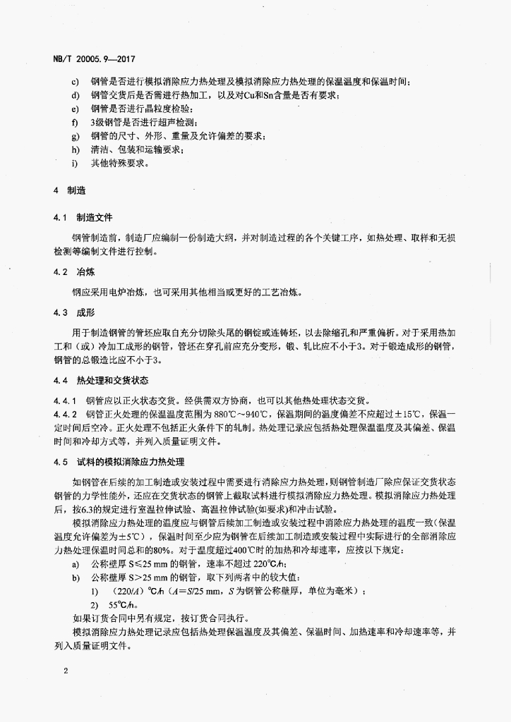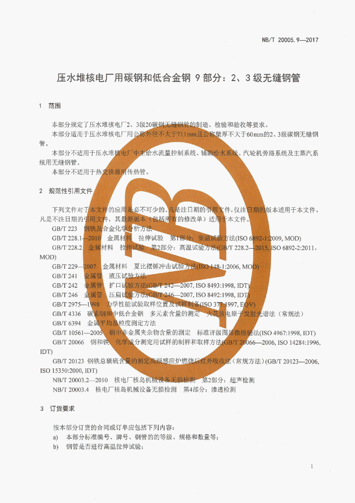 NB/T 20005.9-2017 压水堆核电厂用碳钢和低合金钢 第9部分:2、3级无缝钢管