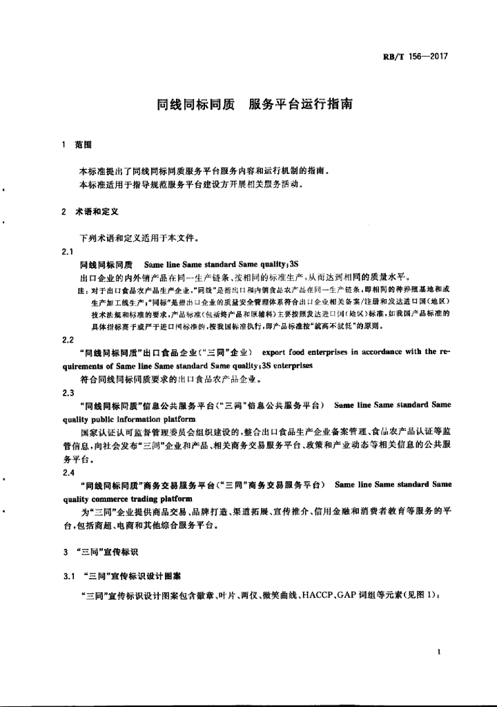 RB/T 156-2017 同线同标同质 服务平台运行指南