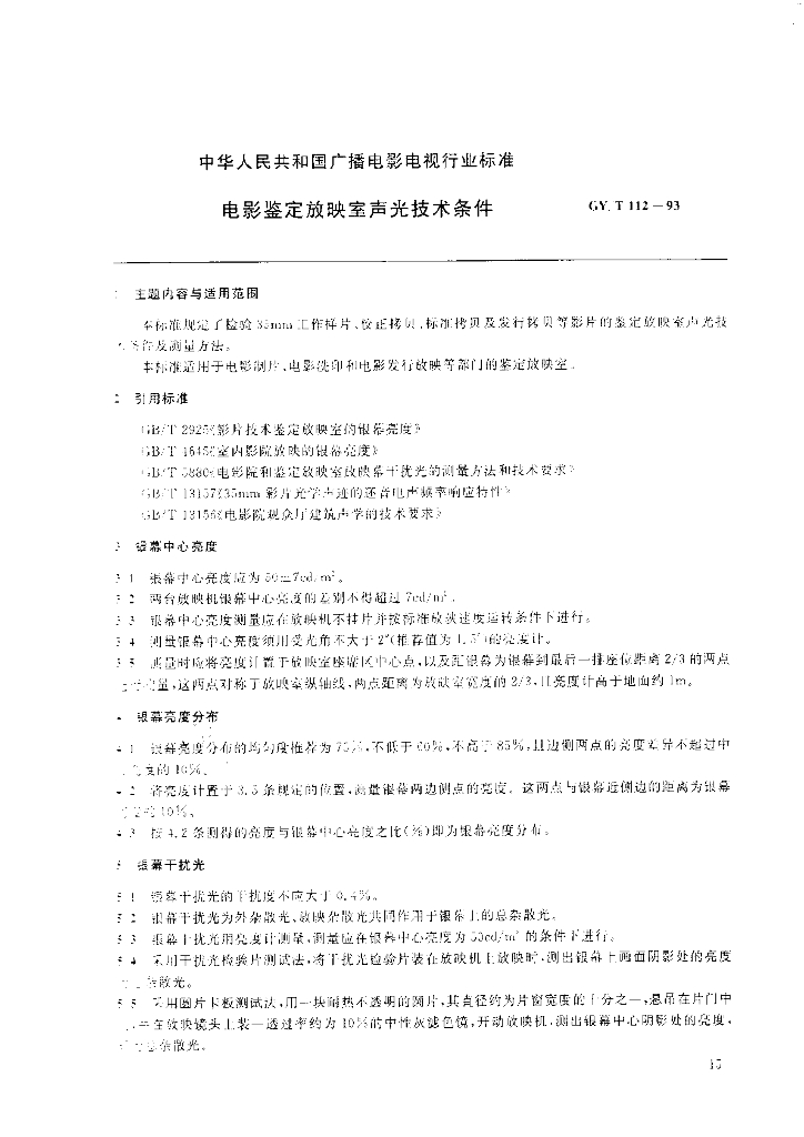 GY/T 112-1993 电影鉴定放映室声光技术条件
