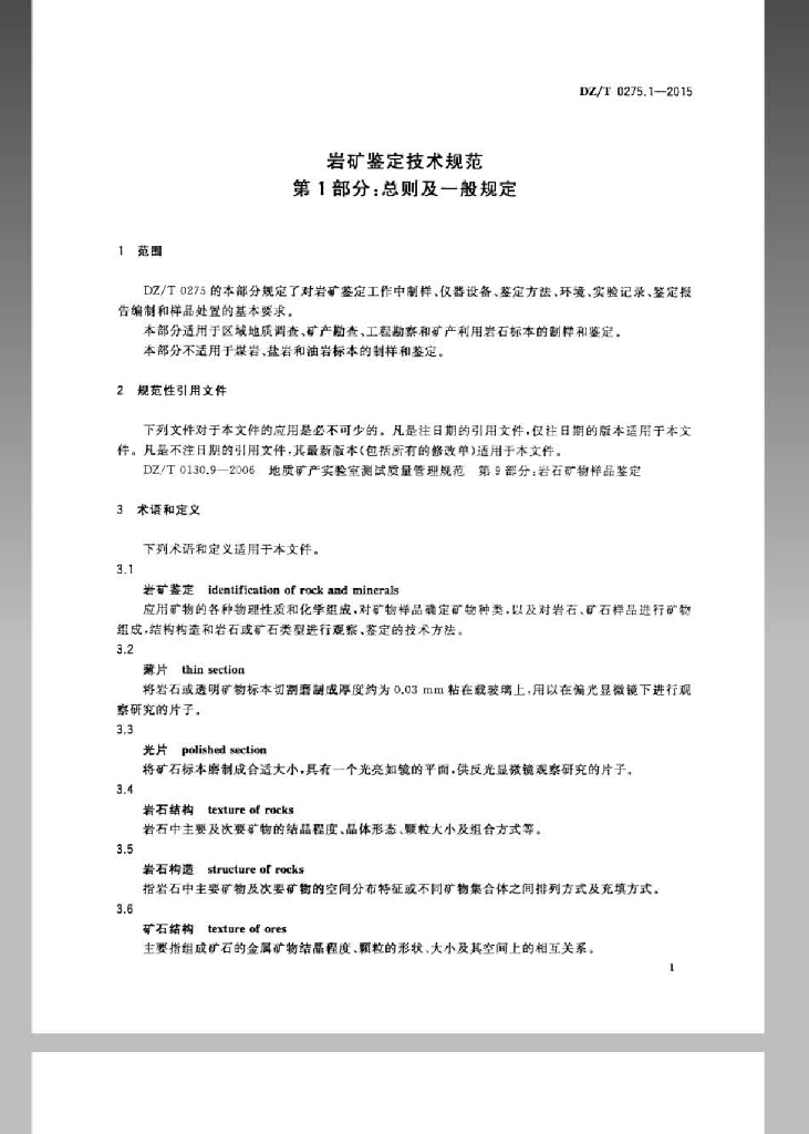 DZ/T 0275.1-2015 岩矿鉴定技术规范 第1部分:总则及一般规定