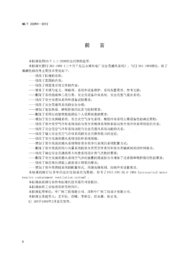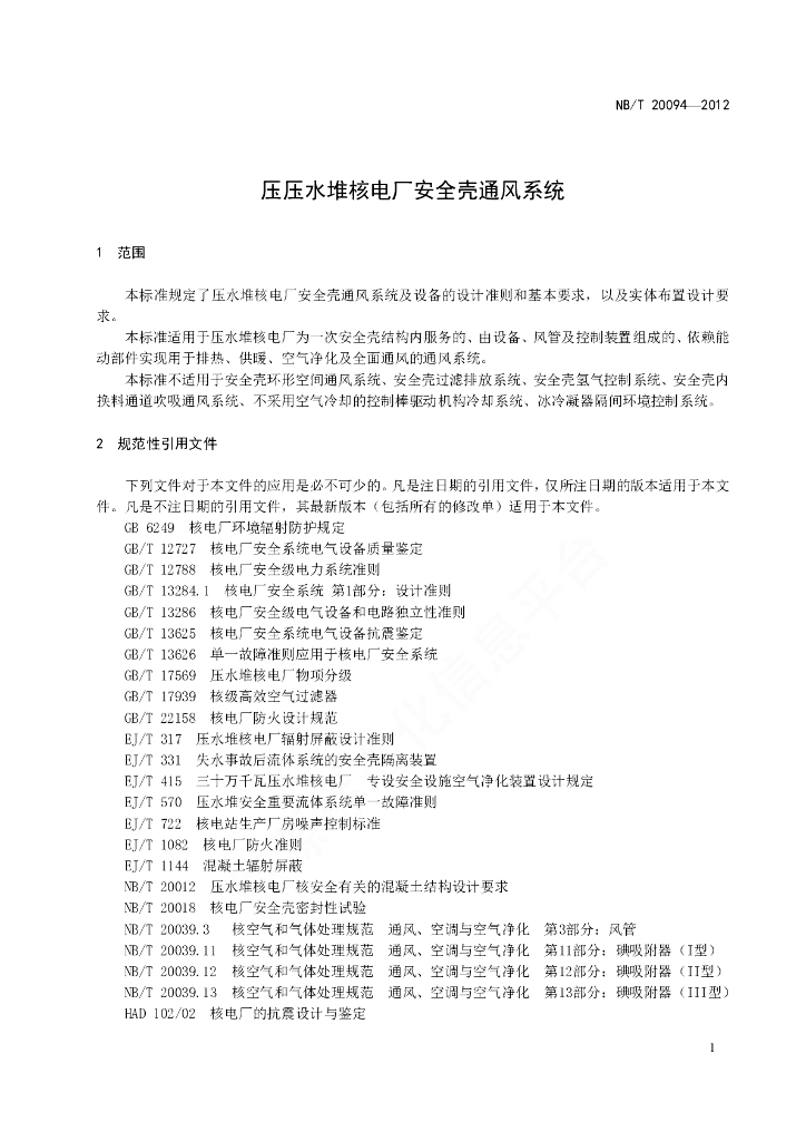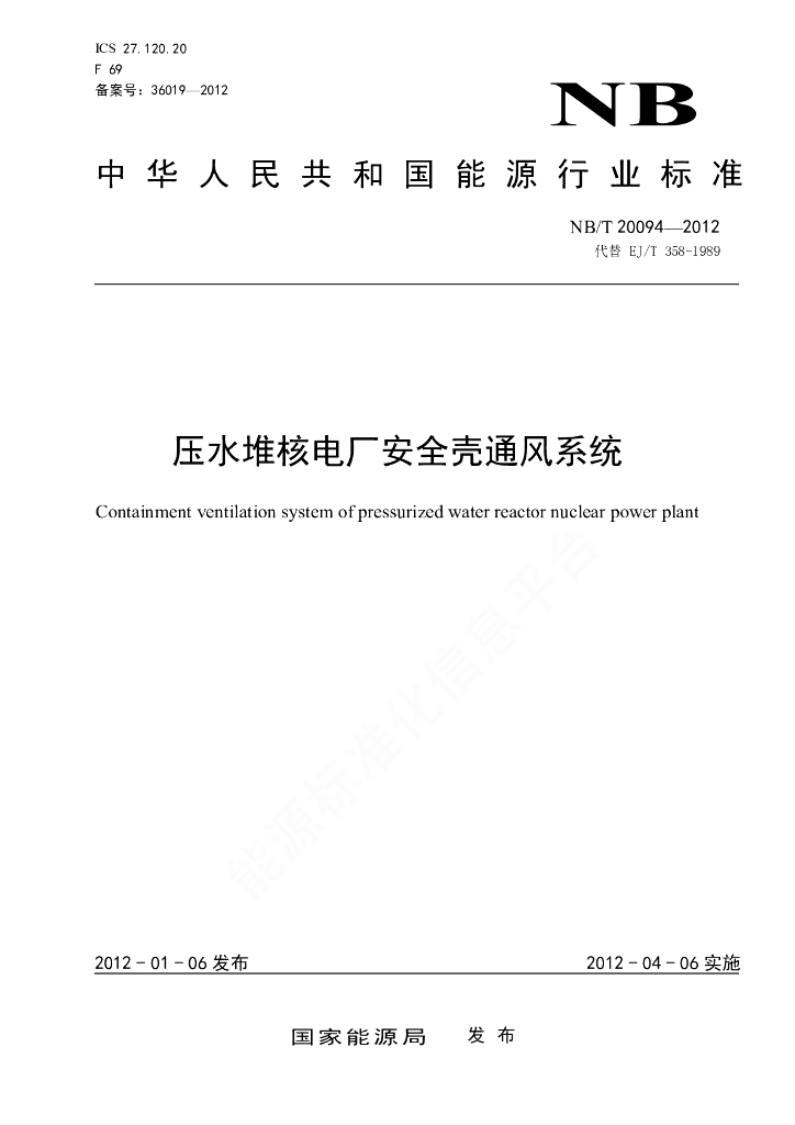 NB/T 20094-2012 压水堆核电厂安全壳通风系统