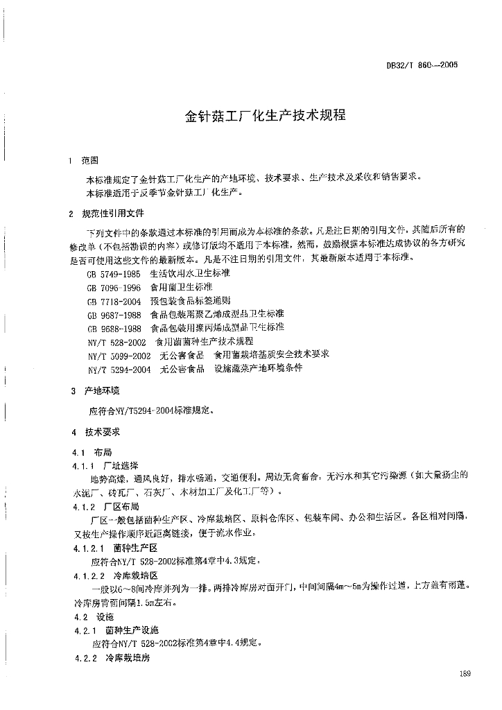 DB32/T 860-2005 金针菇工厂化生产技术规程