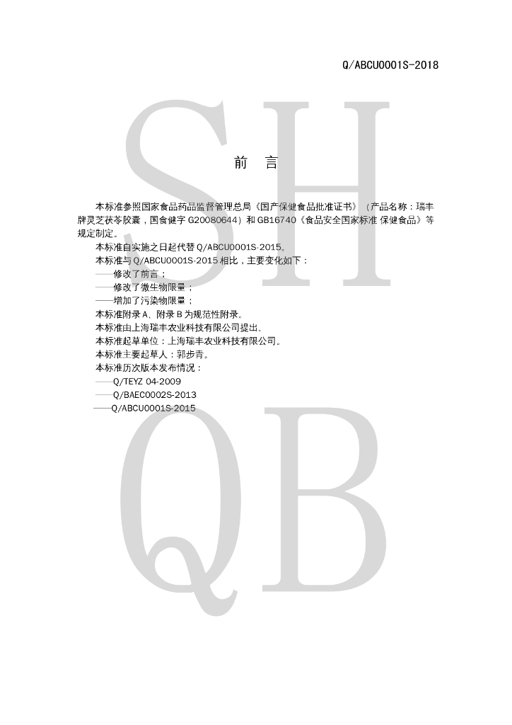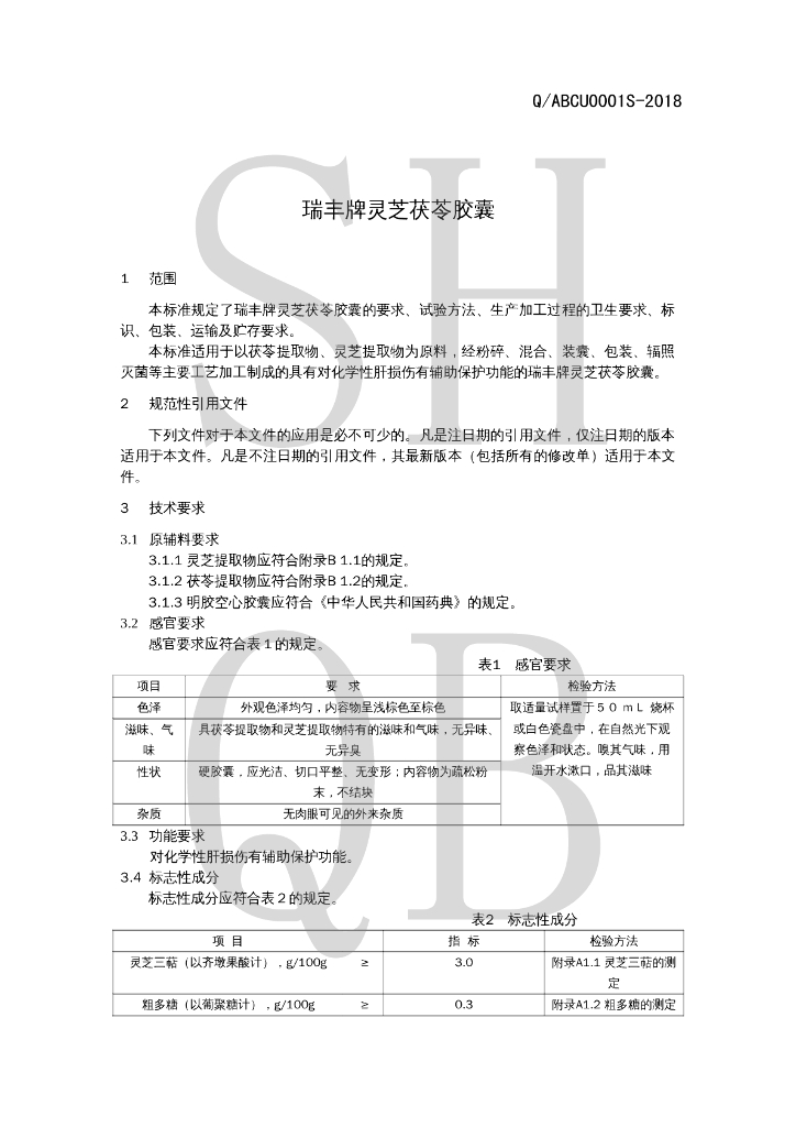 Q/ABCU 0001S-2018 瑞丰牌灵芝茯苓胶囊