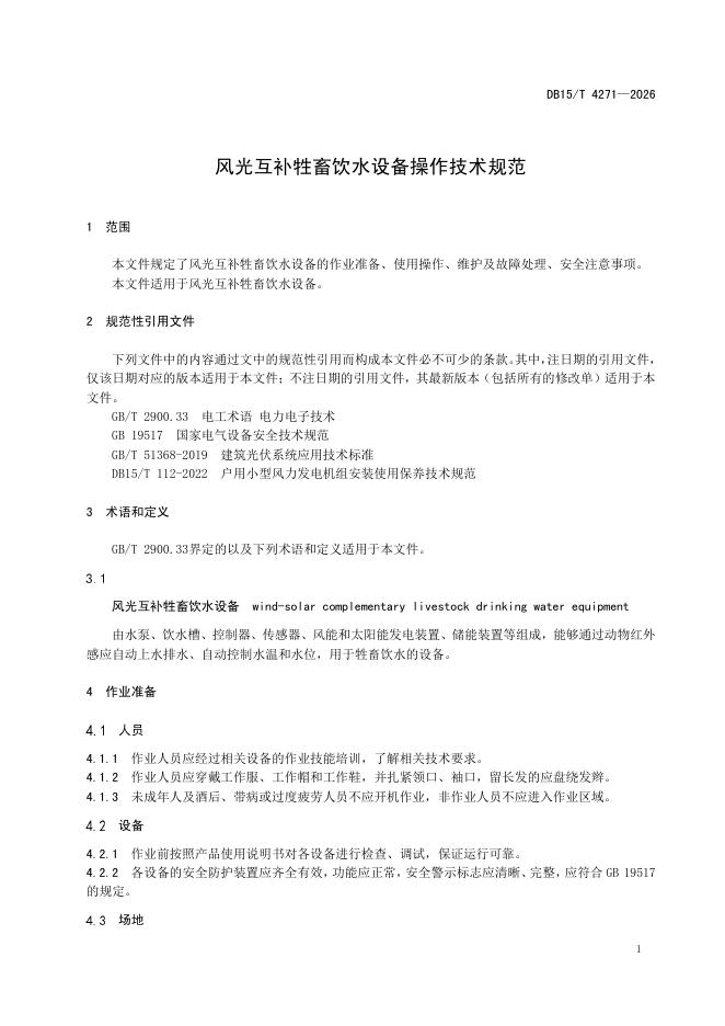 DB15/T 4271-2026 风光互补牲畜饮水设备操作技术规范