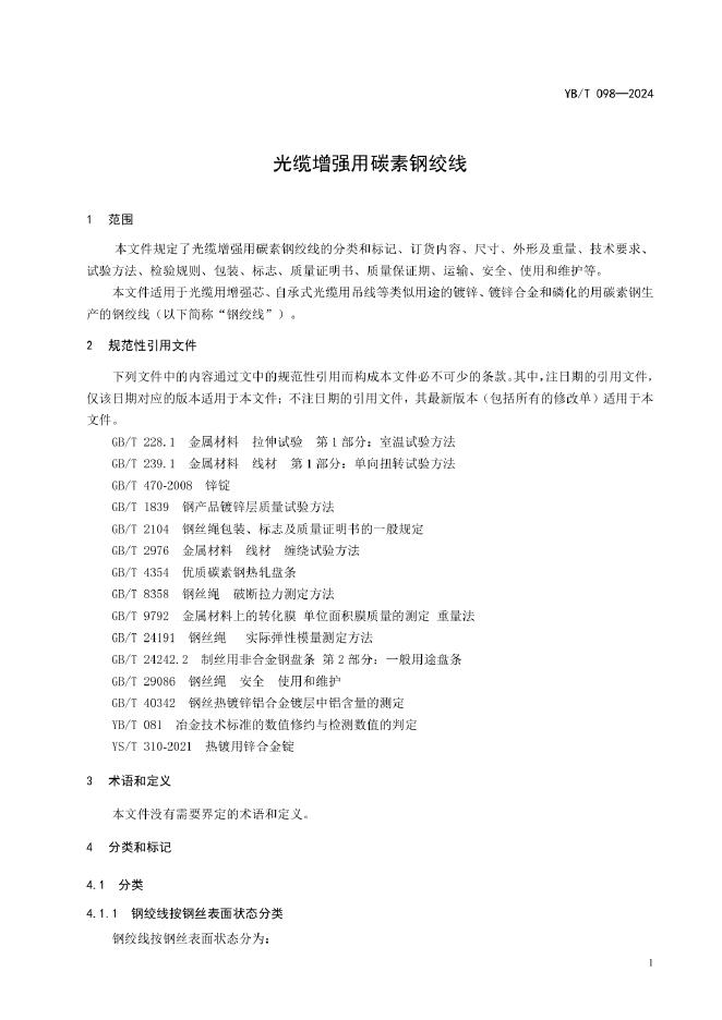 YB/T 098-2024 光缆增强用碳素钢绞线