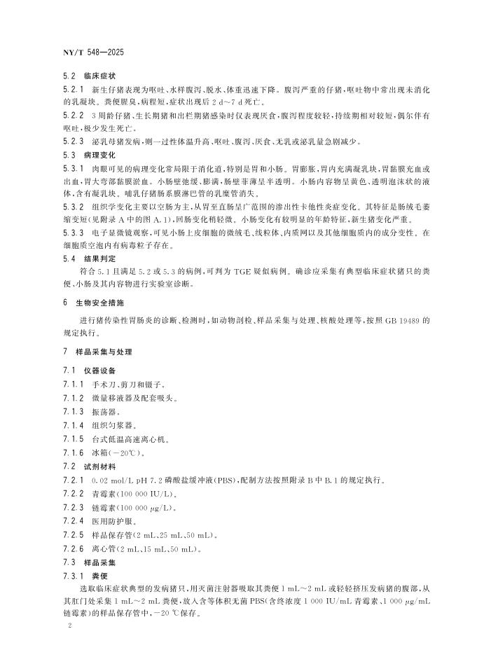 NY/T 548-2025 猪传染性胃肠炎诊断技术