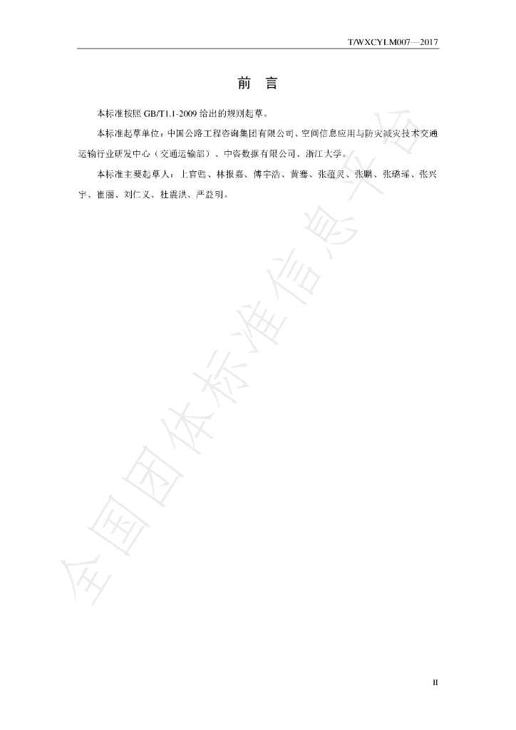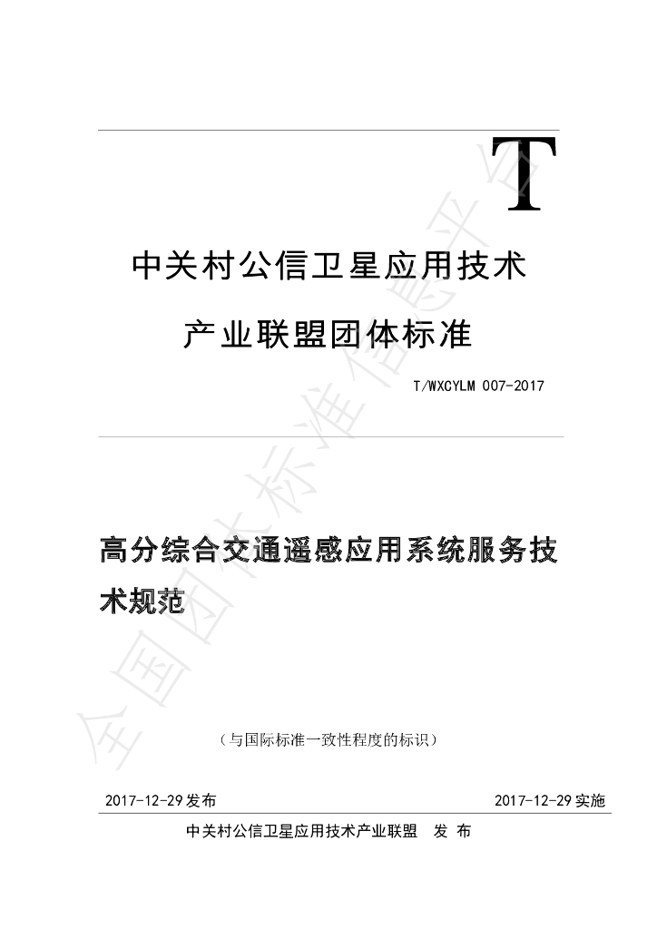 T/WXCYLM 007-2017 高分综合交通遥感应用系统服务技术规范