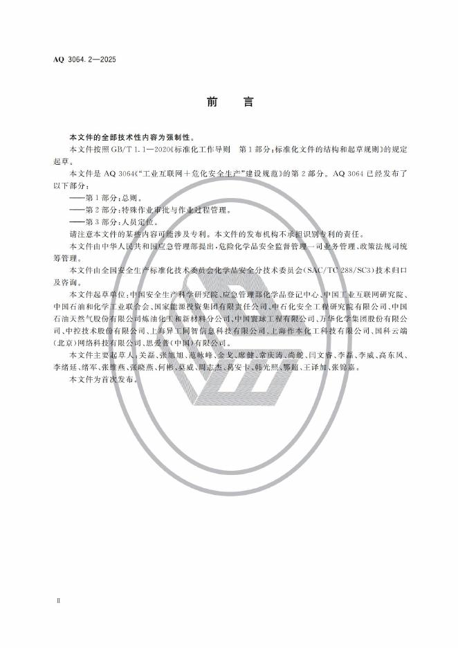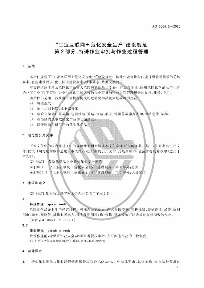 AQ 3064.2-2025 “工业互联网+危化安全生产”建设规范 第2部分:特殊作业审批与作业过程管理