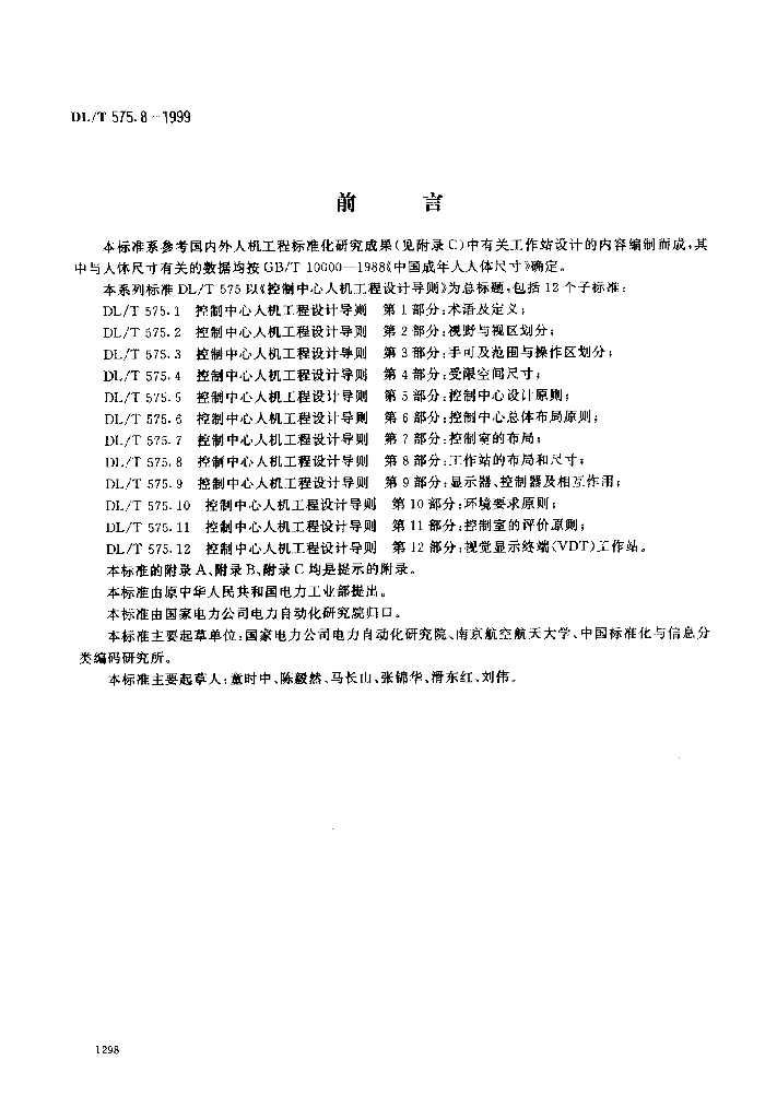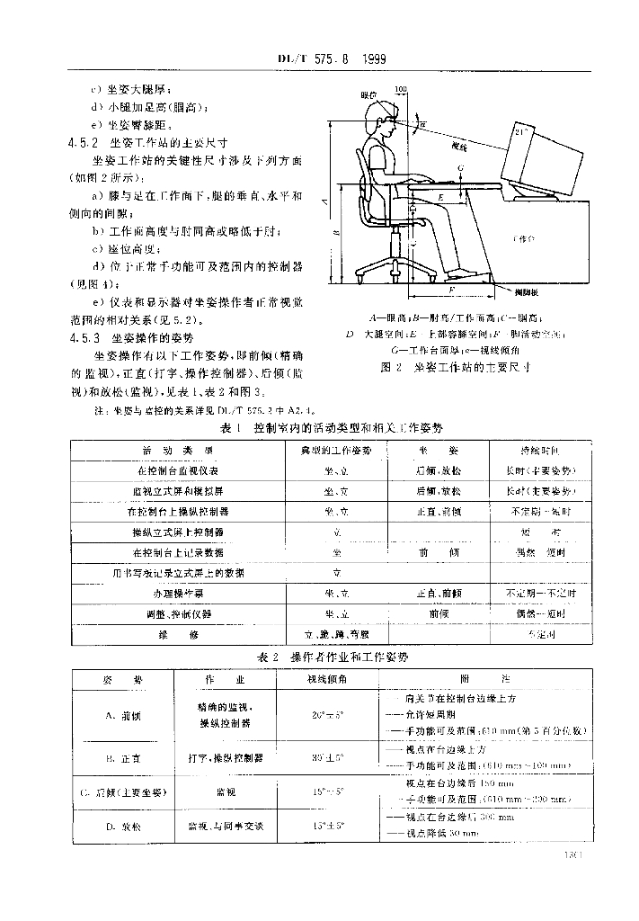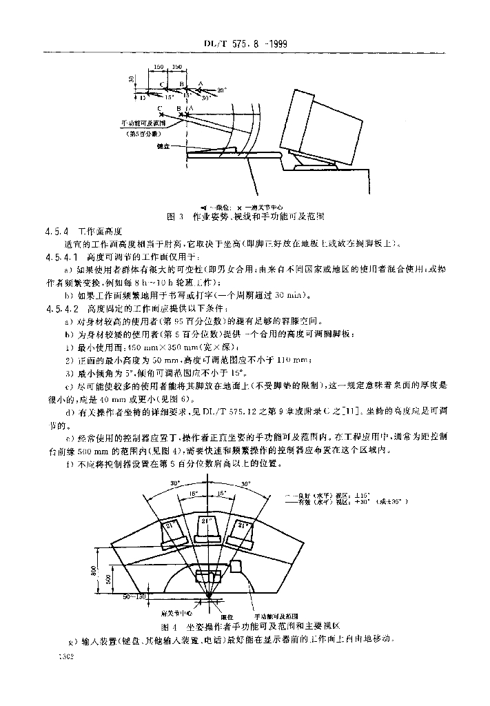 DL/T 575.8-1999 控制中心人机工程设计导则 第8部分:工作站的布局和尺寸