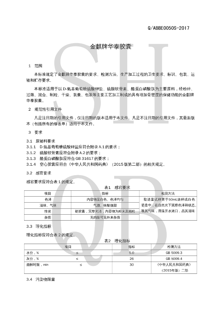 Q/ABBE 0050S-2017 金麒牌华泰胶囊