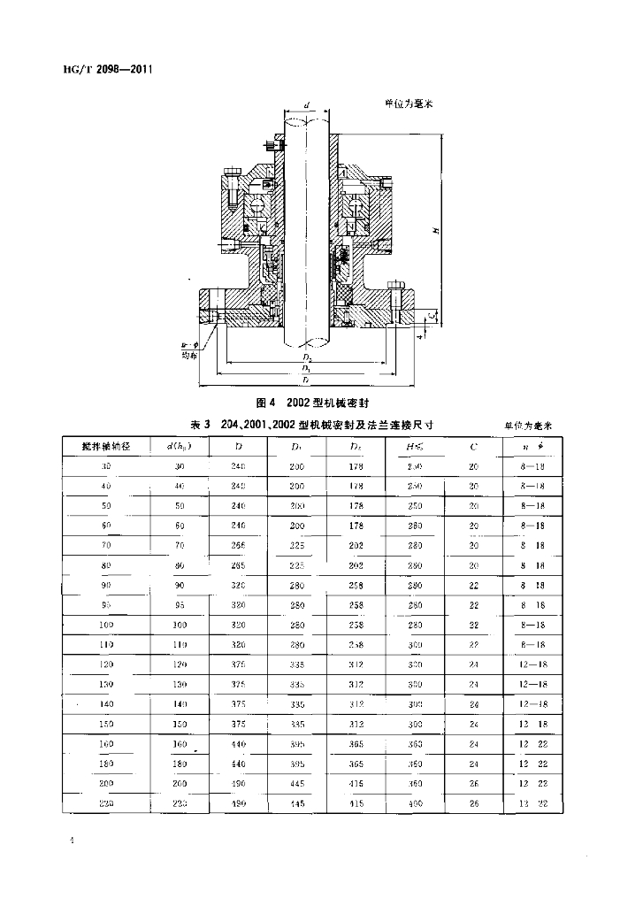 HG/T 2098-2011 釜用机械密封类型、主要尺寸及标志