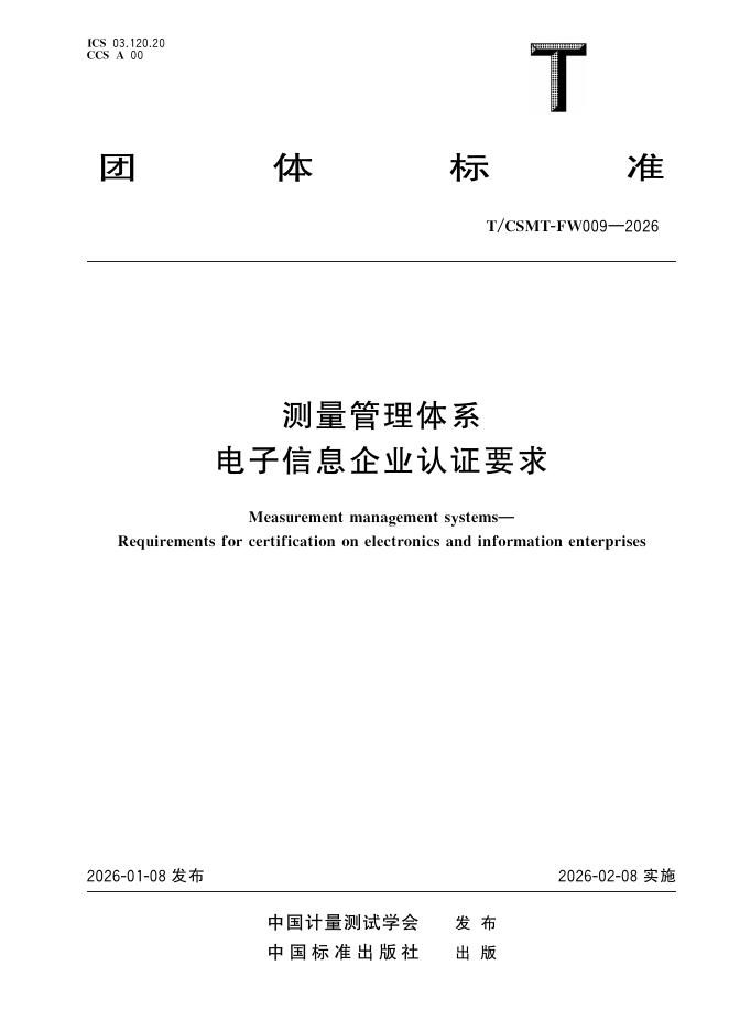 T/CSMT FW009-2026 测量管理体系 电子信息企业认证要求