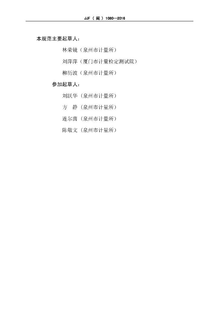 林荣镜(泉州市计量所)、刘萍萍(厦门市计量检定测试院)、柳历波(泉州市计量所)、刘跃华(泉州市计量所)、方静(泉州市计量所)、连尔茵(泉州市计量所)、陈敬文(泉州市计量所)