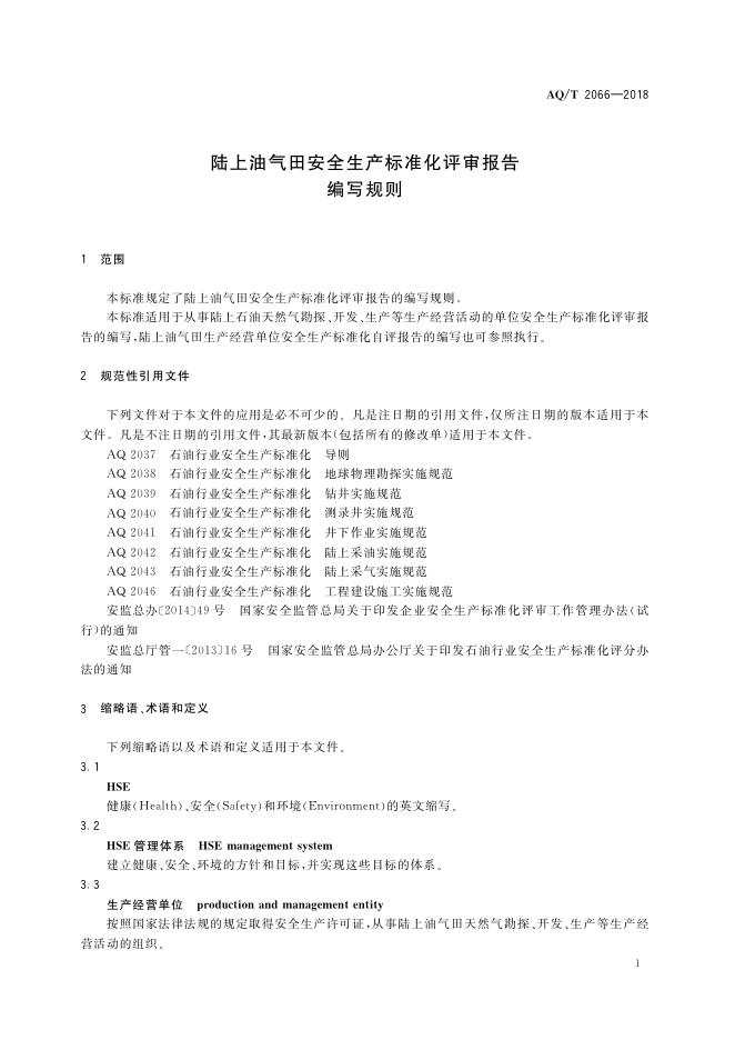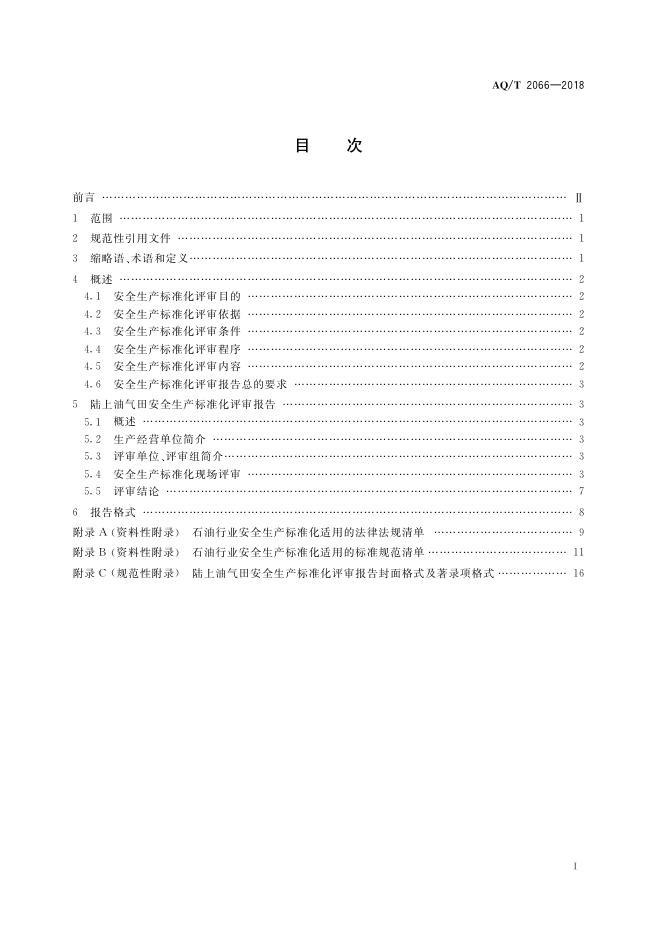 AQ/T 2066-2018 陆上油气田安全生产标准化评审报告编写规则