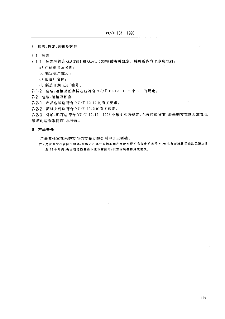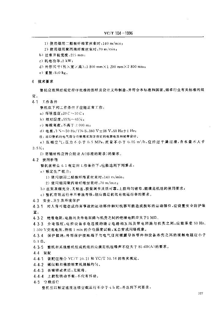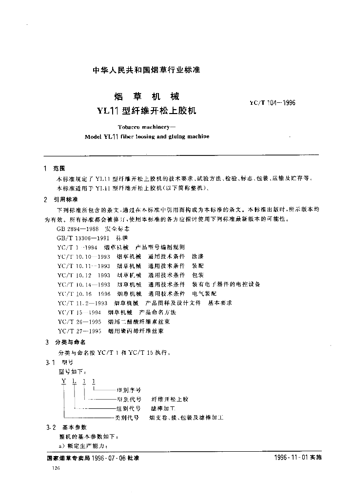 YC/T 104-1996 烟草机械 YL11型纤维开松上胶机