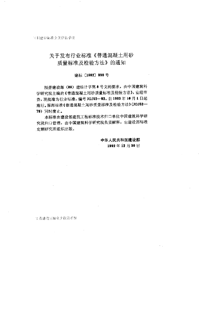 JGJ 52-1992 普通混凝土用砂质量标准及检验方法
