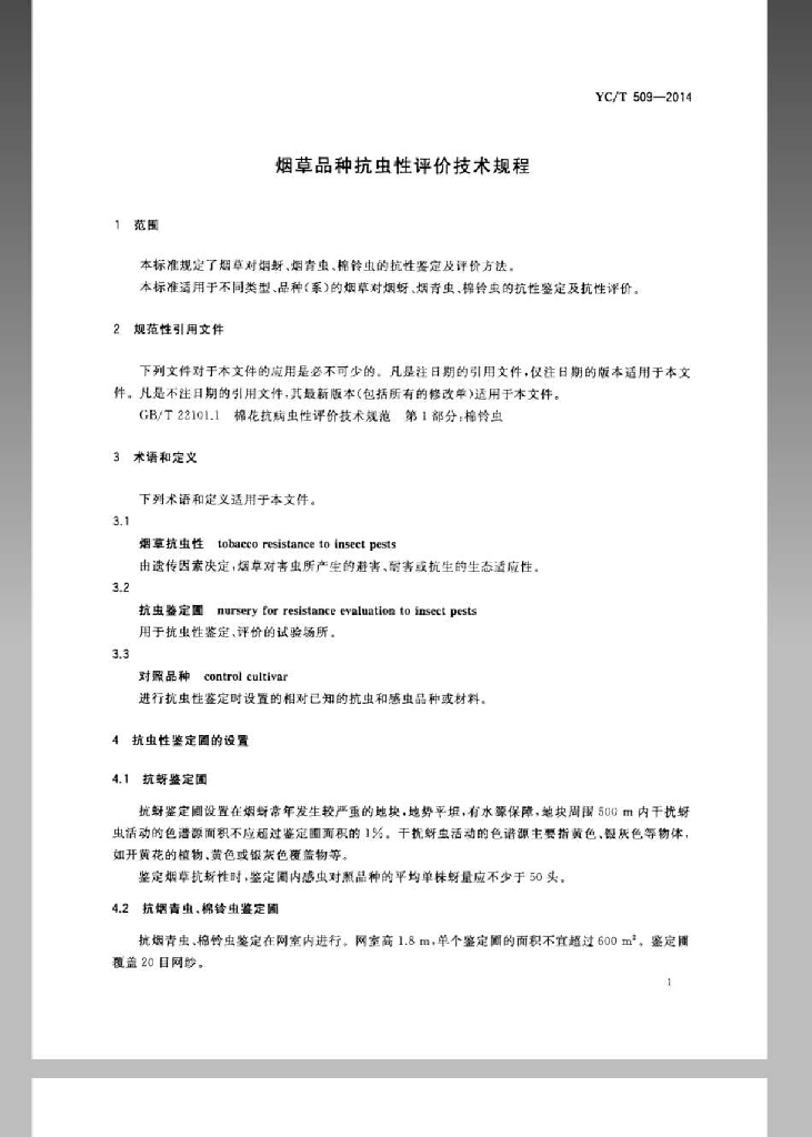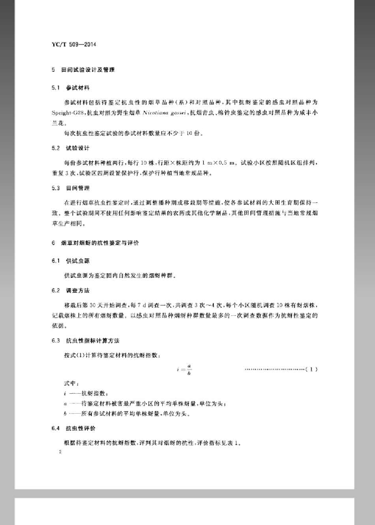 YC/T 509-2014 烟草品种抗虫性评价技术规程