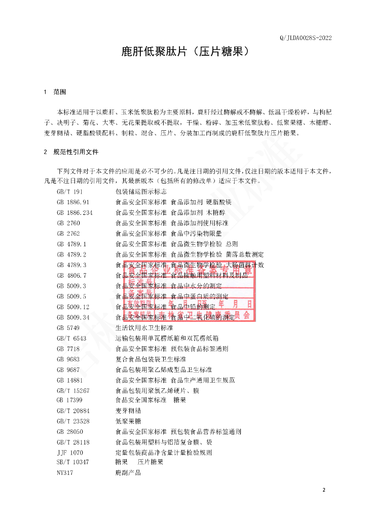 Q/JLDA 0028S-2022 鹿肝低聚肽片(压片糖果)