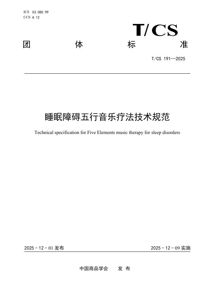 T/CS 191-2025 睡眠障碍五行音乐疗法技术规范